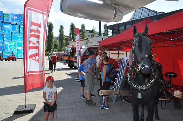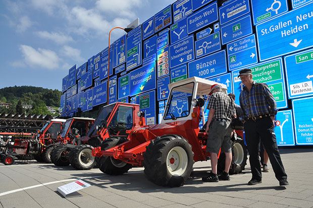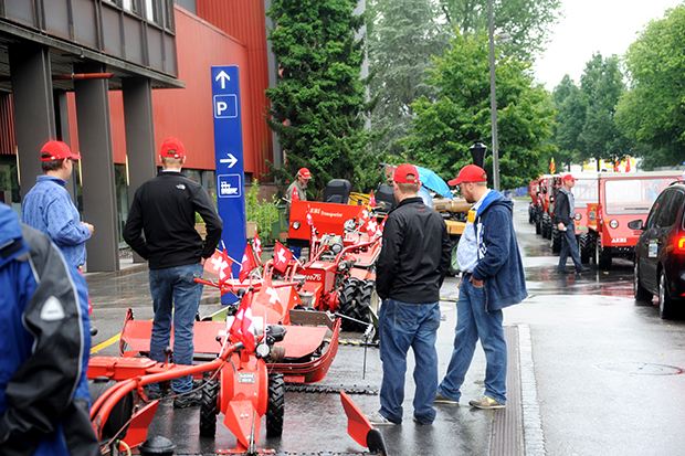 Begonnen hat die Aebi-Sonderschau mit dem grossen Einzug der Maschinen am Samstag, 1.August. Die mit Schweizer Fahnen dekorierten Einachser, Terratracs und Transporter wurden von ihren Besitzern punkt 10 Uhr ins Verkehrshaus gefahren und an ihren Standort gebracht, wo sie noch bis morgen Sonntag zu sehen sind.