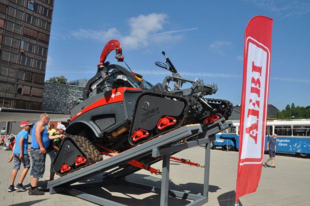 Die Firma Aebi zeigt in der Sonderschau auch neue Modelle. So etwa den 2009 lancierten Stufenlos-Transporter Vario VT 450 oder den 72-PS-Terratrac TT211, der seit 2014 erhältlich und damit das neuste Modell von Aebi ist. Ein Hingucker ist auch der schräggestellte 109-PS-Terratrac TT280 mit Raupenfahrwerk und Überkopfwinde zur Präparation von Skipisten.