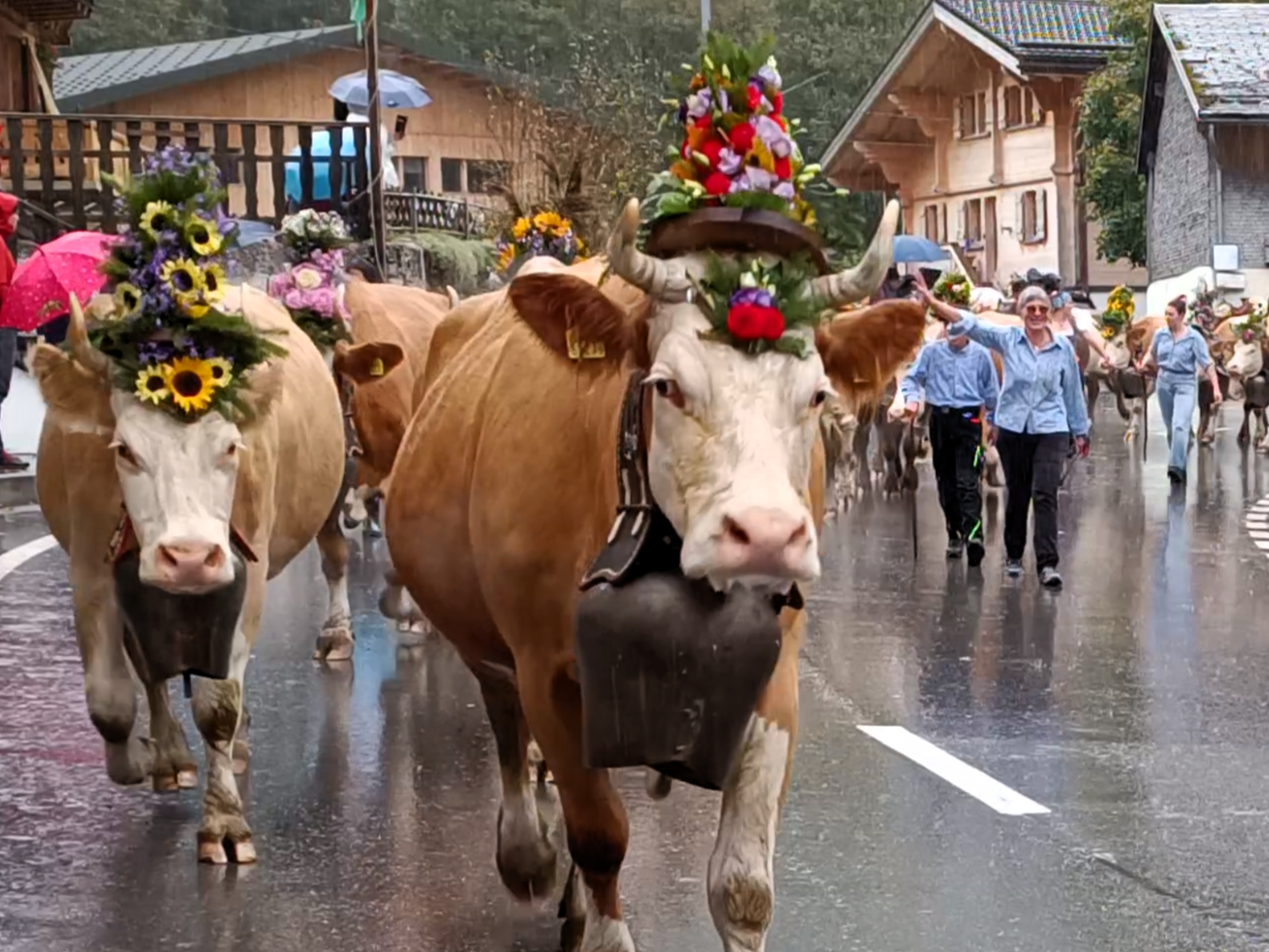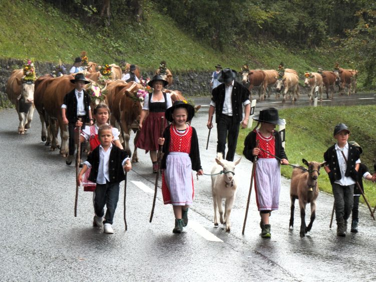 Zu diesem Festtag tragen die Kühe ihre schönsten Glocken und werden von ihren Besitzern liebevoll geschmückt. Älpler und Kühe werden bei ihrer Ankunft im Dorf bejubelt.