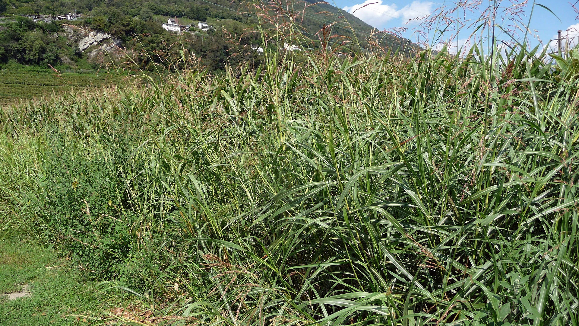 Südlich der Alpen breitet sich die Aleppo-Hirse, auch Wilde Mohrenhirse genannt, seit einigen Jahren stark aus. «Die konkurrenzkräftige, mehrjährige Pflanze bildet bis zu zwei Meter lange Rhizome und produziert bis zu 28’000 Samen pro Exemplar, die leicht über Erdmaterial, Schuhe oder Maschinen verschleppt werden», schreibt Agroscope.