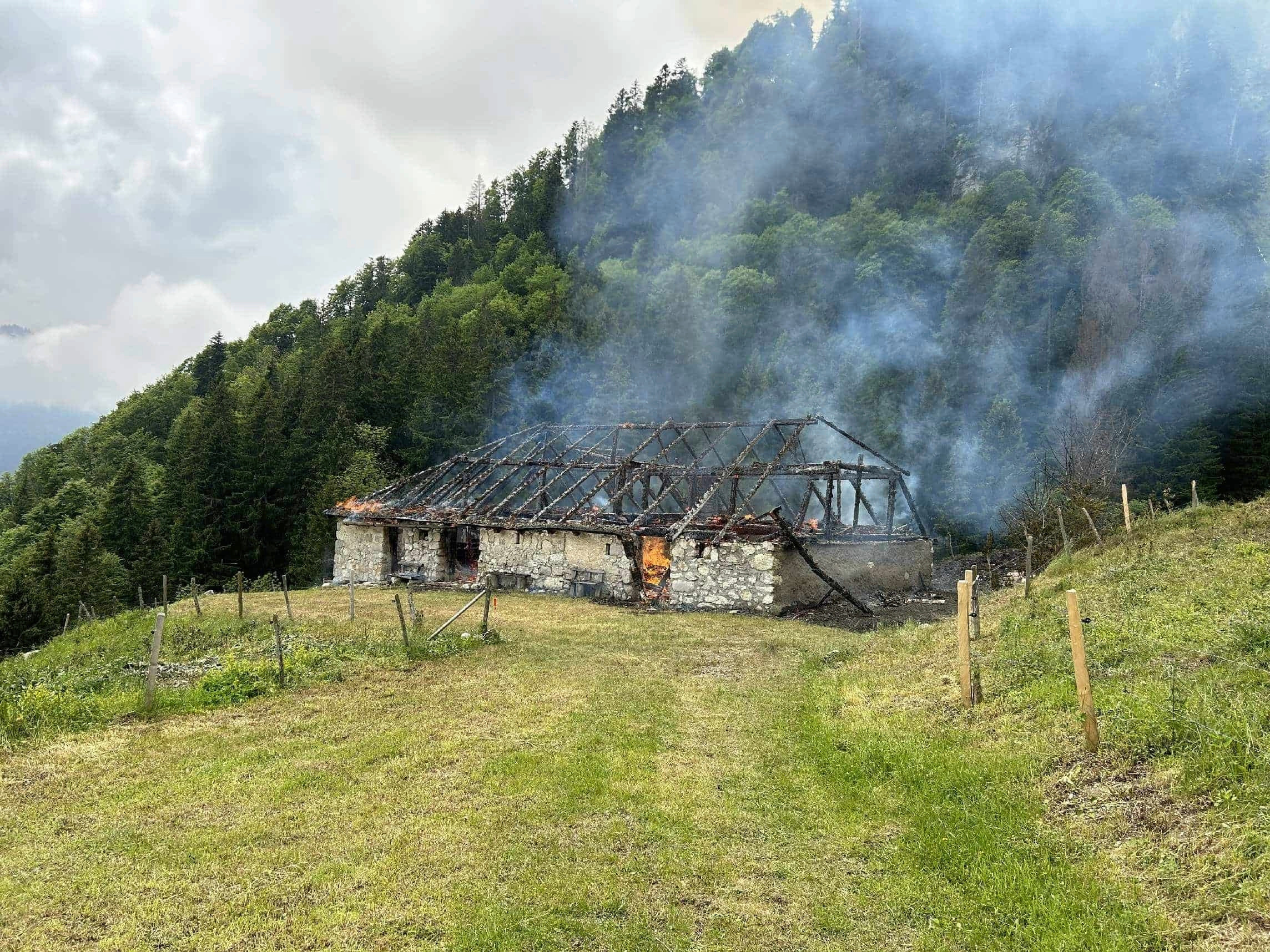Der Brand wurde der Polizei gegen 12.50 Uhr gemeldet. Als die Einsatzkräfte vor Ort eintrafen, stand die Alphütte bereits in Vollbrand. Die Feuerwehr brachte das Feuer unter Kontrolle. Das Gebäude war aber nicht mehr zu retten.