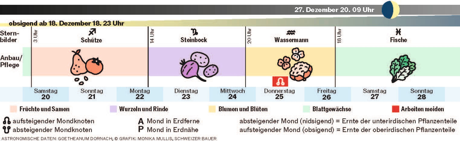 Und genau das ist der Fall. Im Mondkalender nach dem Goetheanum wird an Knotenpunkten von Arbeiten mit Pflanzen abgeraten. Am Weihnachtstag stehen diese aber sowieso nicht im Fokus.