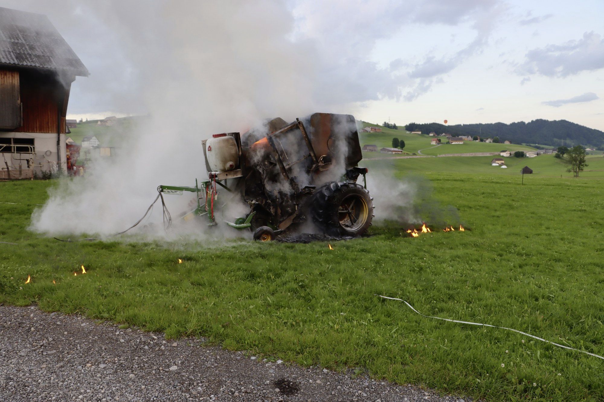 Gemäss Polizeiangaben war ein 33-Jähriger mit Traktor und angekoppelter Maschine auf einer Strasse unterwegs. Die landwirtschaftliche Maschine fing während der Fahrt plötzlich Feuer. Der Traktorfahrer lenkte die Komposition umgehend auf eine Wiese.