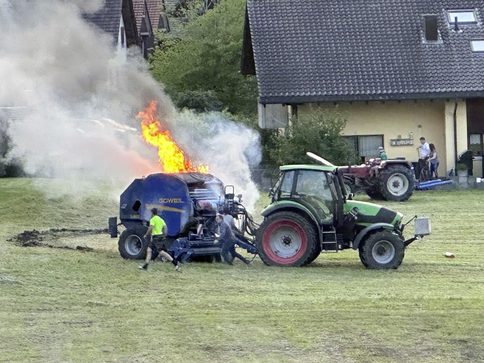 In Eggerstanden AI ist am Dienstagabend eine Ballenpresse in Brand geraten. Es entstand massiver Sachschaden.