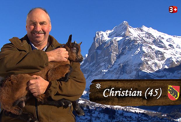 Christian: Der 45-Jährige wohnt an einer Talabfahrt im Berner Oberland. Im Sommer geht er mit seinen Kühen und Ziegen auf die Alp. Das grösste Hobby von Christian ist das Treicheln. Der Berner ist seit acht Jahren Single. Die Zweisamkeit ist für Christian etwas sehr Wichtiges. Er sucht eine hilfsbereite Frau, die ihn mit ihrem Temperament aus der Reserve locken kann.