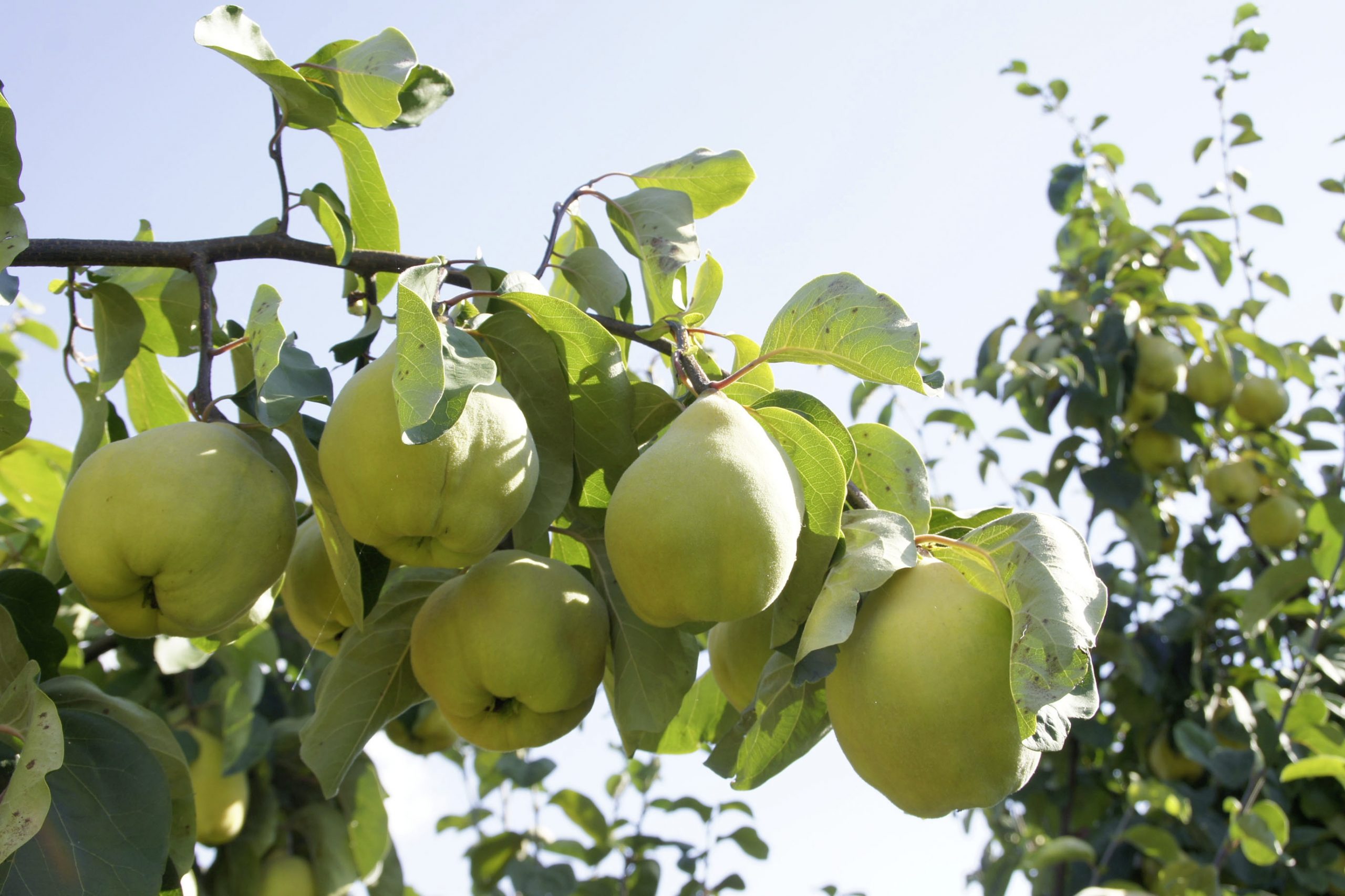 Quitten haben im November bis Dezember ihre Genussreife und sollten auf jeden Fall vor dem ersten Frost geerntet werden. Die Frucht hat marktwirtschaftlich gesehen keine grosse Bedeutung und wird daher oft unterschätzt. Zu Unrecht, denn sie kann durchaus mit inneren Werten punkten: nichts, was exorbitant aus dem Rahmen fällt, aber doch ein buntes Potpourri an vielen wichtigen Vitaminen und Mineralstoffen. Hervorzuheben ist der hohe Pektingehalt, der nicht nur für die Gelee-Herstellung wichtig ist. Pektine haben ein hohes Wasserbindungsvermögen und zählen zu den löslichen und bakteriell abbaubaren Ballaststoffen. Damit sorgen sie unter anderem für ein gutes Milieu im Darm und die Vermehrung günstiger Darmbewohner.