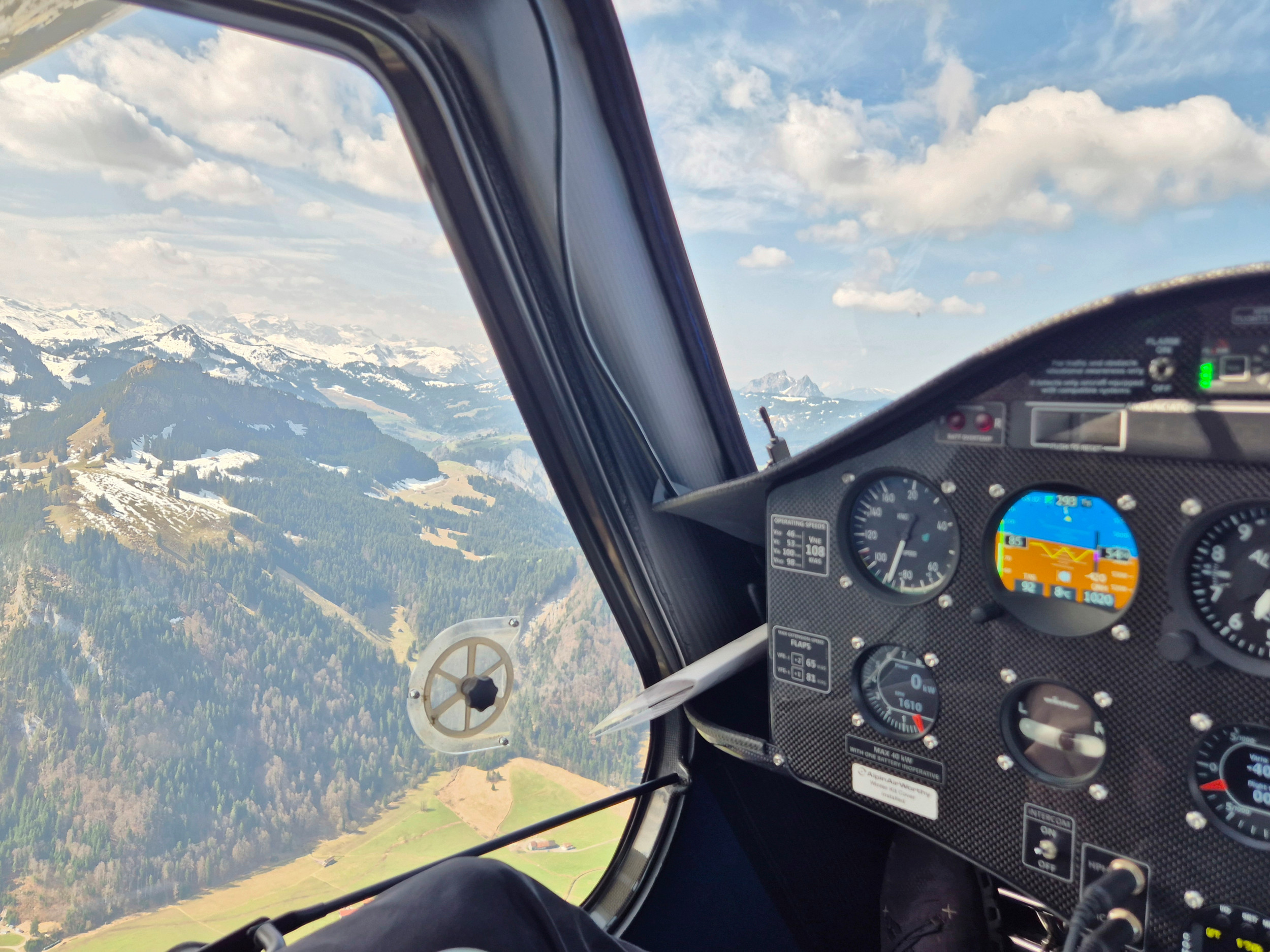 Hotel, Bravo, Sierra, Yankee, Oscar. Was diese Auflistung soll? Es ist der Name des Elektroflugzeugs der Fahr- und Flugschule Fresh Up im internationalen Buchstabieralphabet. So meldet Adrian Stucki, Gründer der Fahrschule, den Start des Flugzeugs. Kurz darauf hebt es ab, und nach einigen Minuten eröffnet sich das Bergpanorama über dem Klöntalersee, dem Wägitalersee und dem Sihlsee.