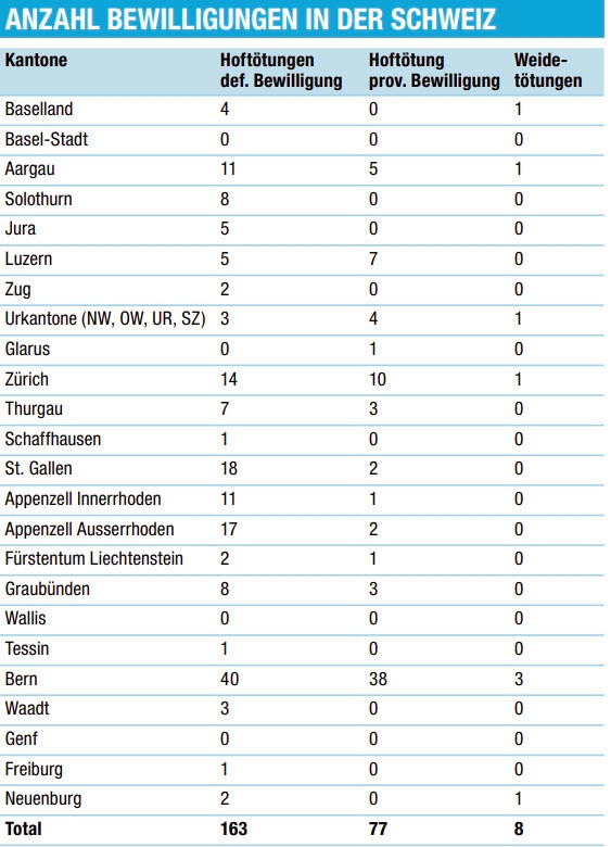Quelle: Gemäss den Angaben der kantonalen Veterinärämter.