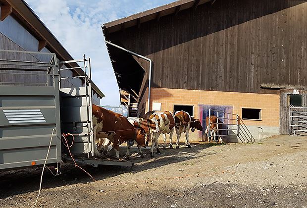 Nach dem Frühstück gehen wir mit dem grossen Viehtransporter die zehn Rinder auf dem Pachtbetrieb im Bruch abholen. Auch die anderen zehn Rinder, welche unter der Hauptstrasse grasen, müssen zurück in den Stall. Diese über die Hauptstrasse zu treiben, ist nicht gerade meine Lieblingsbeschäftigung. Denn die Autos dürfen 80km/h fahren, was unser Vorhaben zu einem gefährlichen Akt werden lässt. Ich bin immer froh, wenn alles gut läuft, so auch heute.