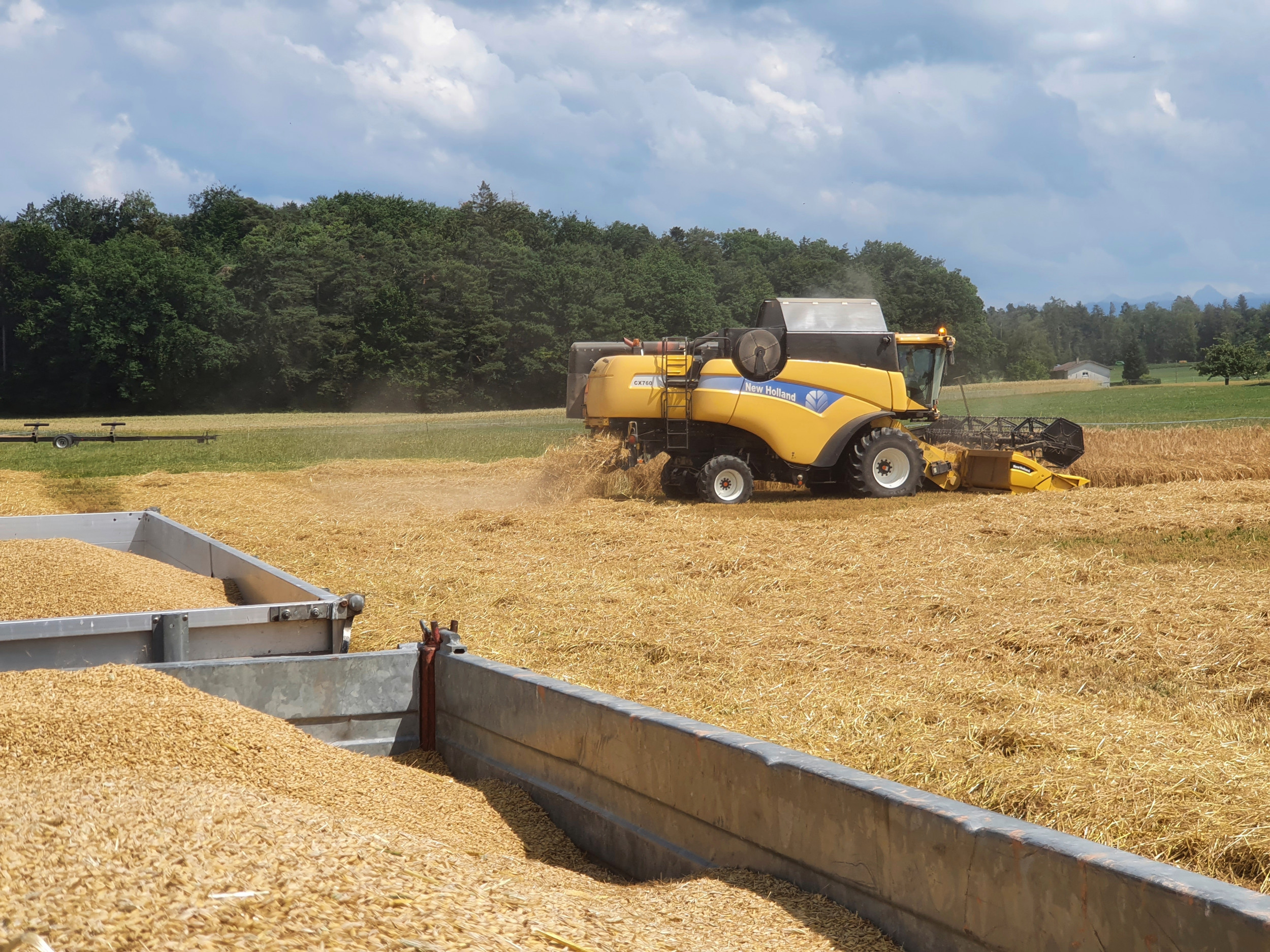 In den letzten Tagen wurde überall in der Schweiz Gerste gedroschen. Im Gegensatz zum letzten Jahr, wo nur wenige kurze Zeitfenster für den Mähdrusch genutzt werden konnten, ist die Situation heuer ziemlich entspannt: Wenn nicht heute, dann halt morgen, heisst die Devise.