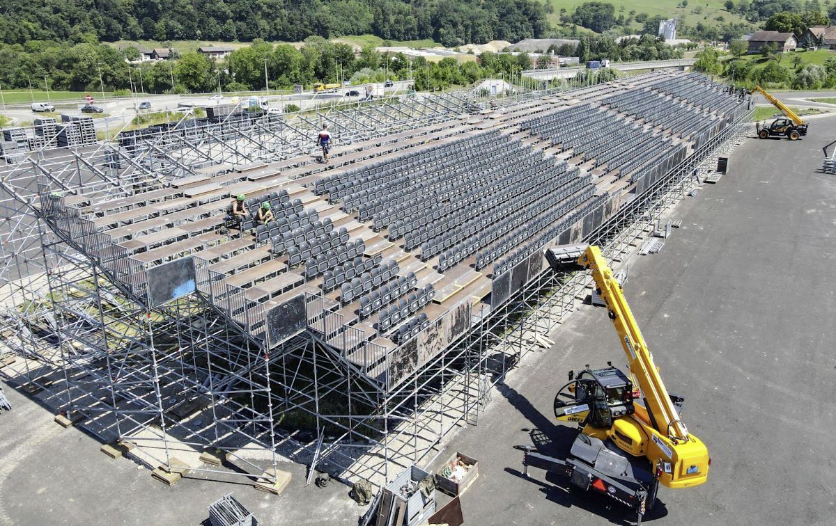 Alsdann gewährten die Verantwortlichen dem Medientross einen Einblick in den Stand der Dinge für das Fest, das vom 26. bis 28. August rund 400’000 Menschen anlocken soll. Langsam wachsen mit Hilfe der Schweizer Armee – die WK-Soldaten tragen 4’000 Diensttage dazu bei – die temporären Zuschauertribünen der Arena in die Höhe.