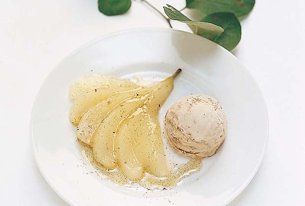 Birnen an Quittensirup mit Nussglace