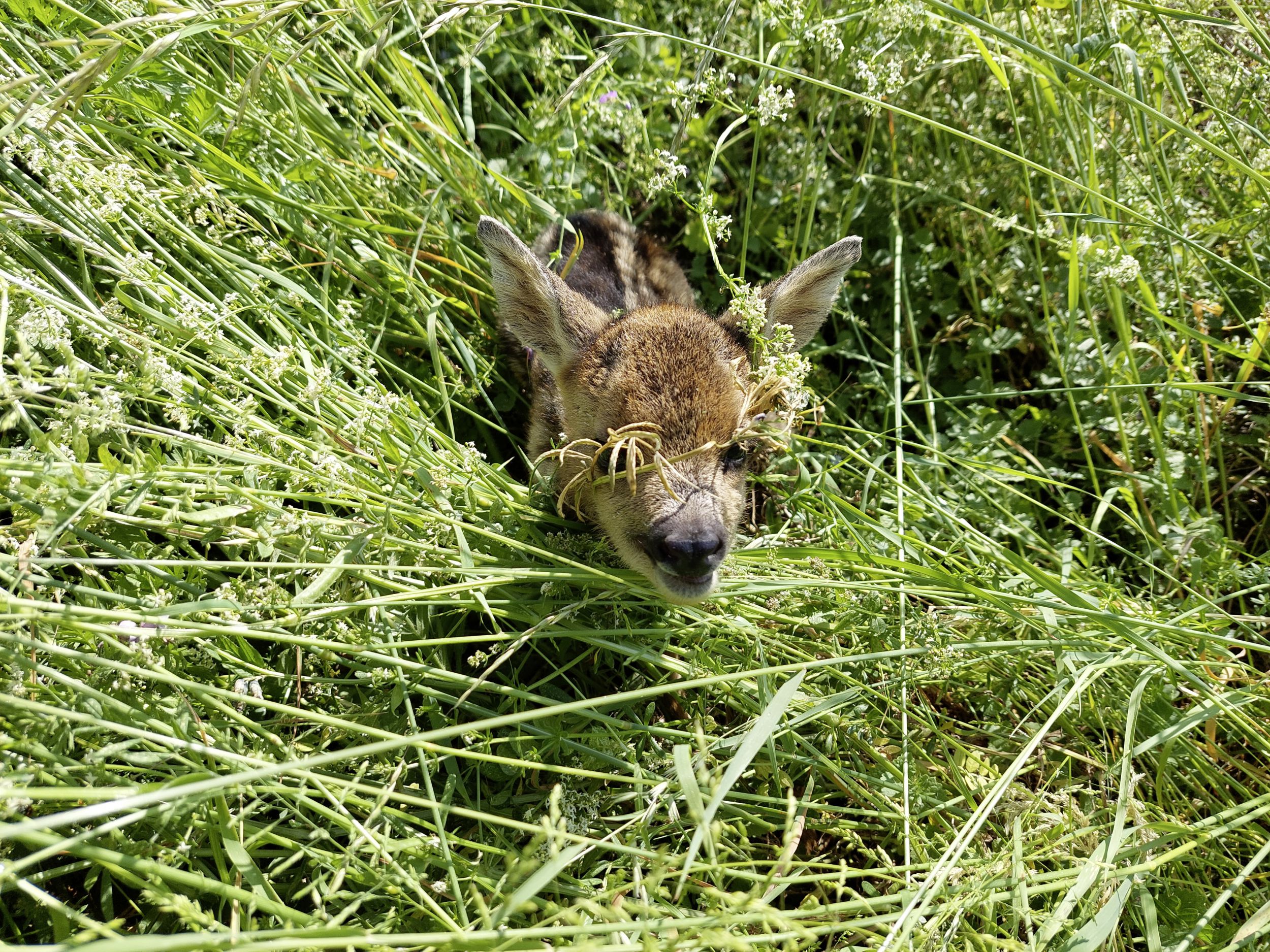 Die Zeit für die Futterkonservierung hat wieder begonnen. Und mit ihr auch die Zeit, in welcher Rehgeissen ihre Gitzi ins hohe Gras absetzen. Diese wähnen sich dort in Sicherheit und ducken sich bei sich nähernder Gefahr auf den Boden, was eigentlich ihr sicherer Tod bedeutet. Deshalb heisst es vor dem Mähen: «Landwirte aufgepasst, erst Wiese kontrollieren, gegebenenfalls Tiere retten und dann erst mähen.»