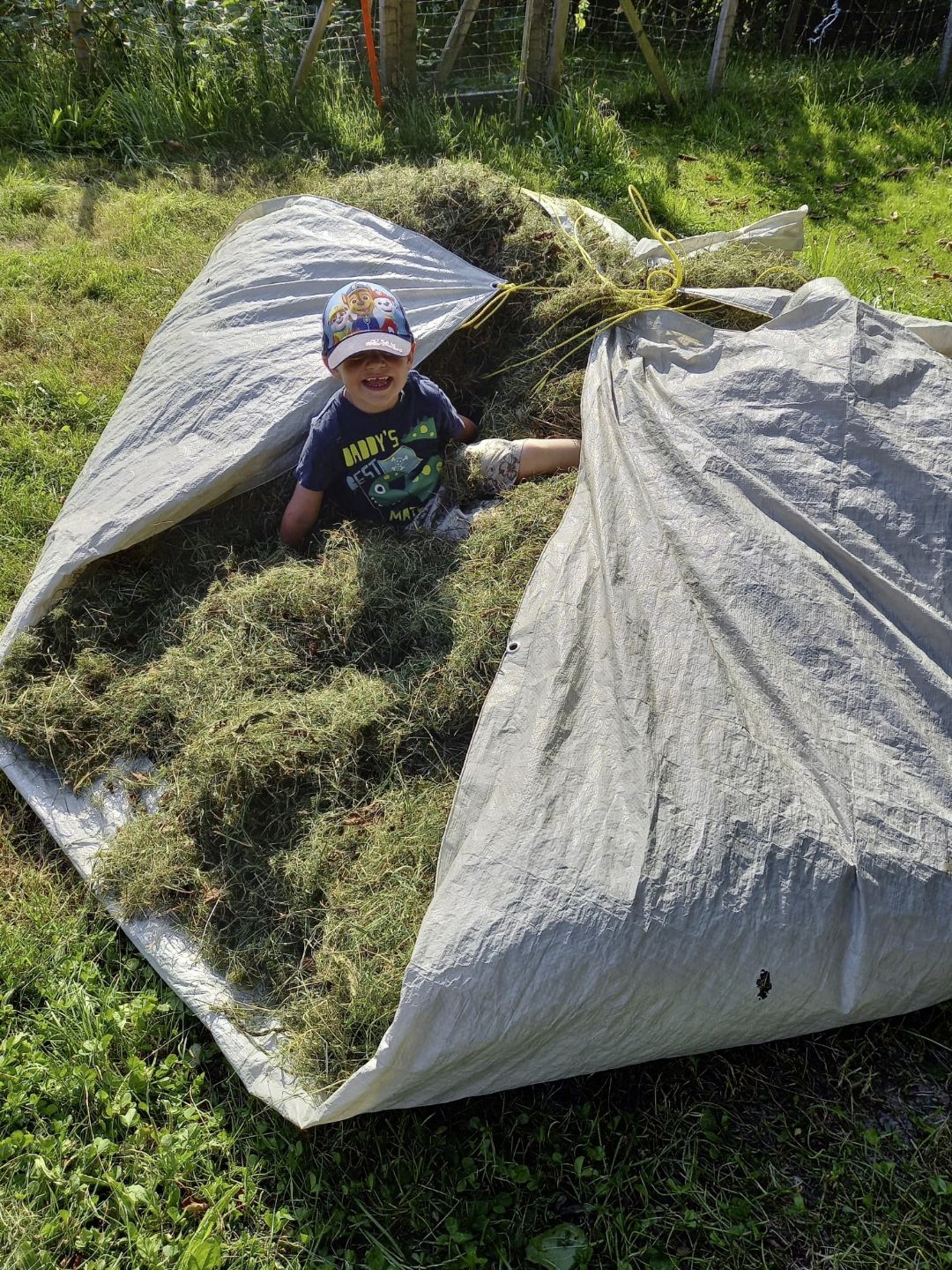 Die selbstgemachten Hosenträger habe sie im Sommer 2021 immer dran gelassen und x-mal mit 60 Grad gewaschen. «Hält bombenfest bis in den Herbst», so die Mutter. Herzliche Gratulation zum Siegerfoto und dem kreativen Heu-Helfer alles Gute für seine Zukunft.