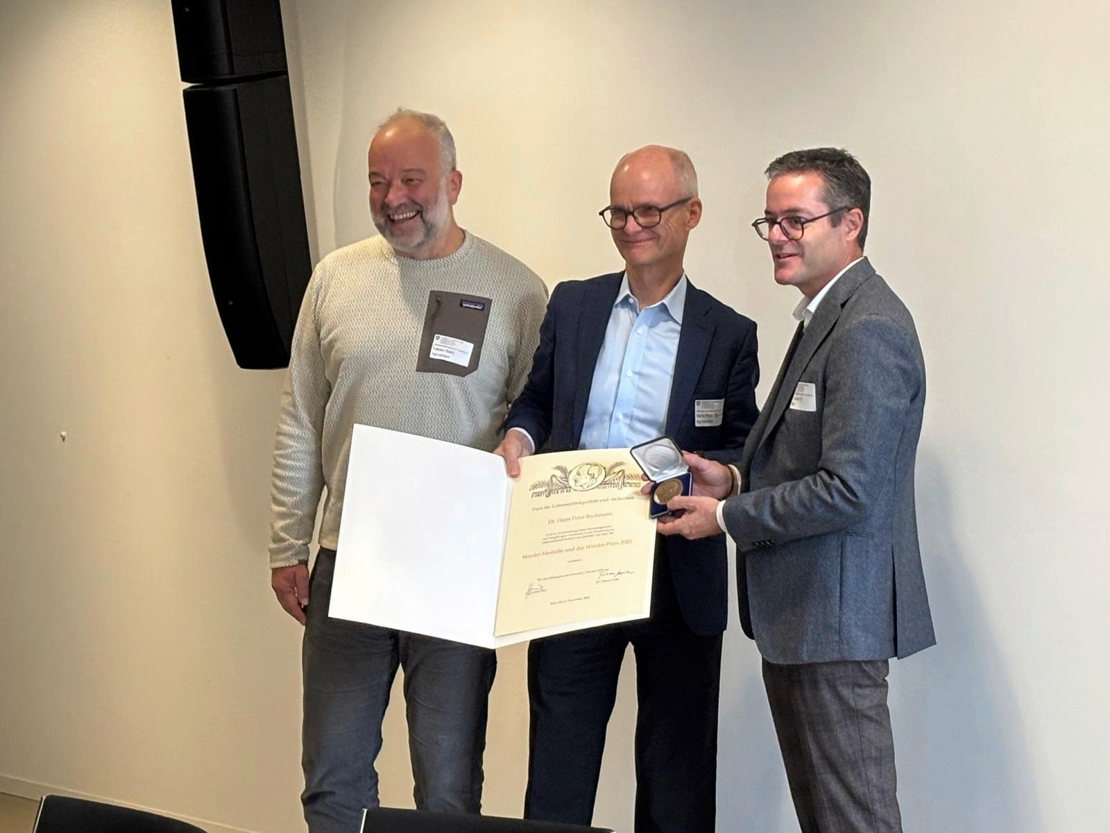 Hans-Peter Bachmann (mitte) von der Forschungsgruppe Käsequalität, Kulturen und Terroir von Agroscope wurde für seine Leistungen ausgezeichnet.