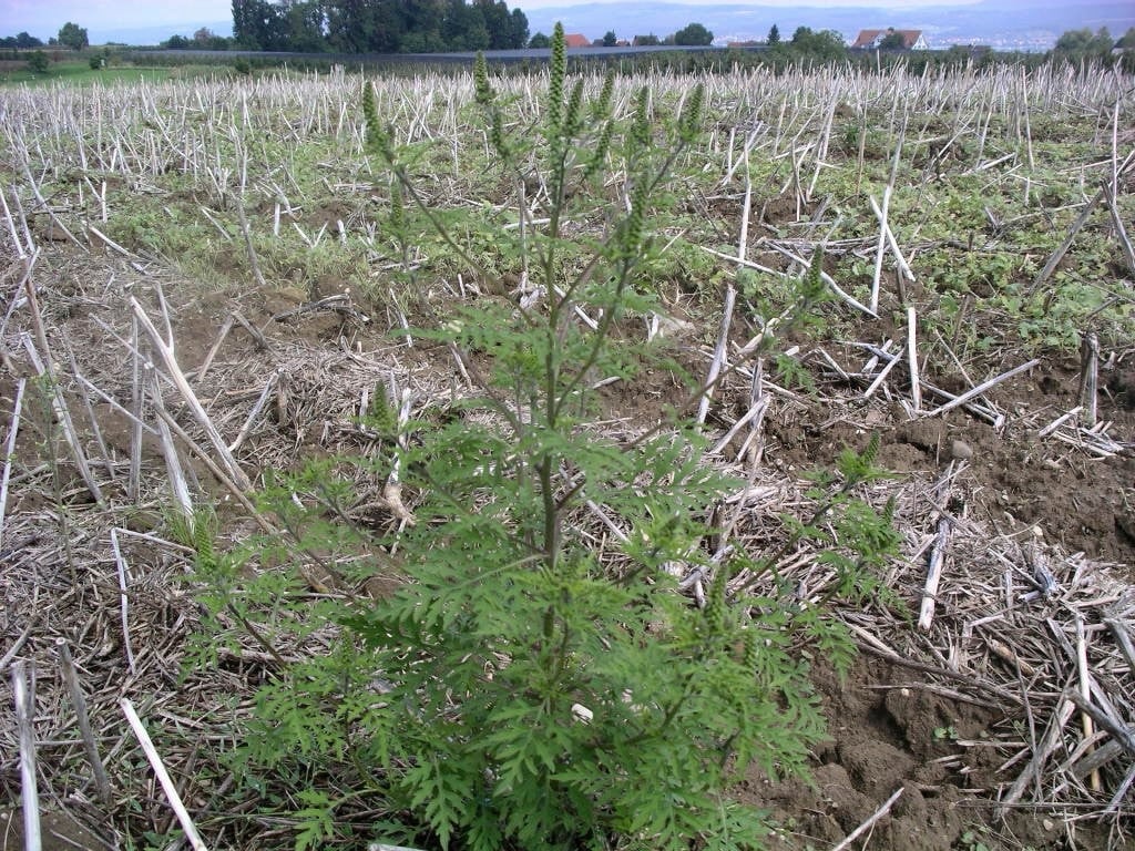 Eine Ambrosia auf abgeerntetem Rapsfeld.