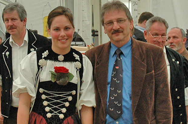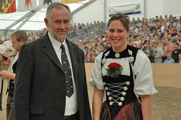 Die charmante Ehrendame Aline Allemann aus Tavannes zusammen mit Karl Wittwer, Geschäftsführer des Bernischen Fleckviehzuchtverbandes.
