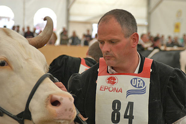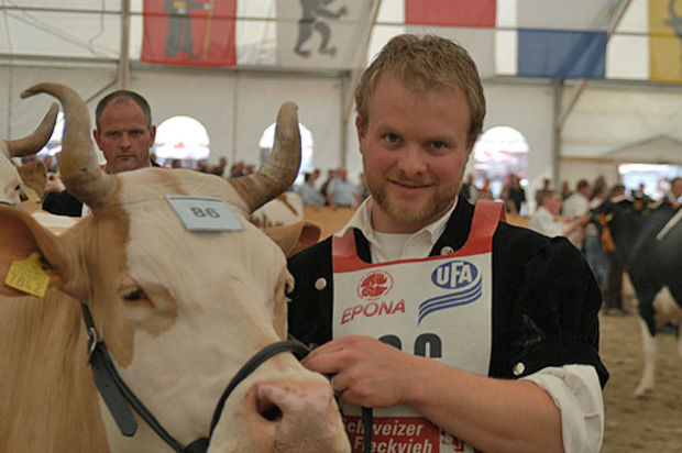 Peter Wyssmüller mit seiner Simmentaler Kuh Benjamin Carmela -
