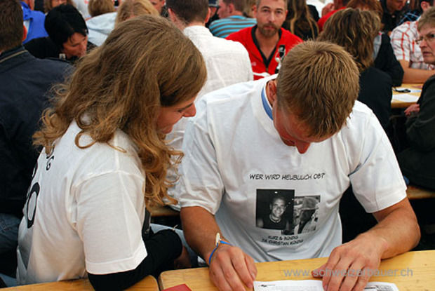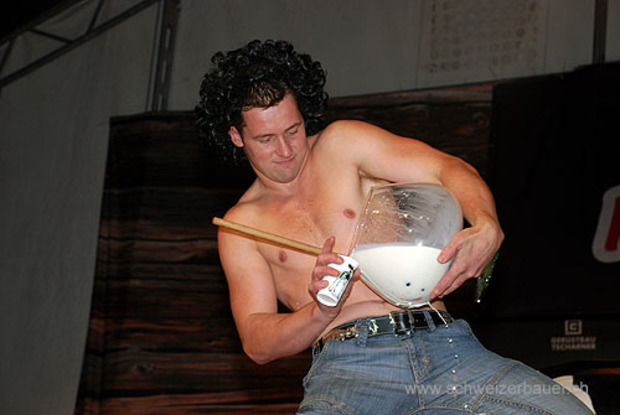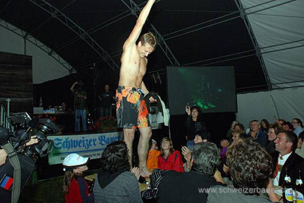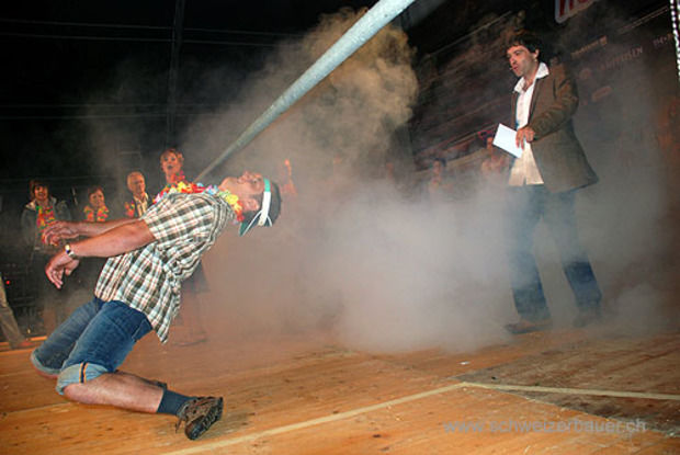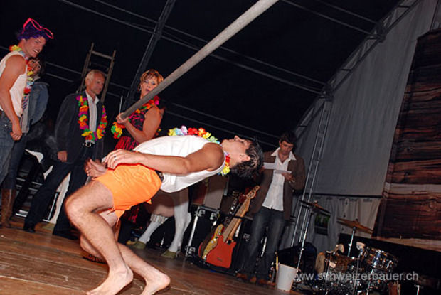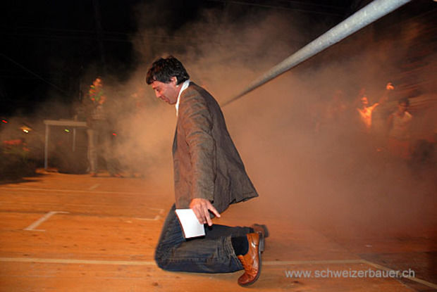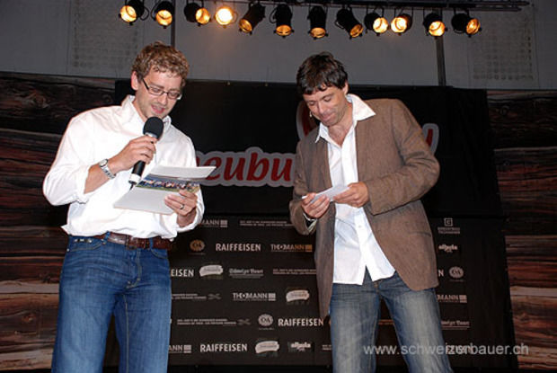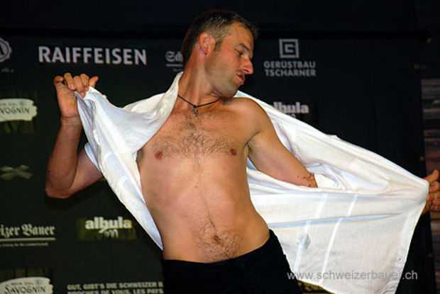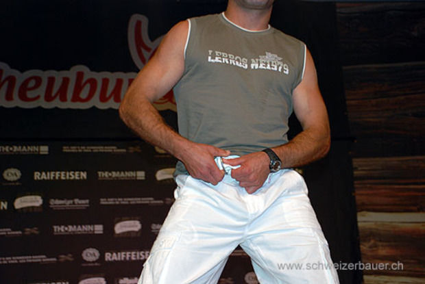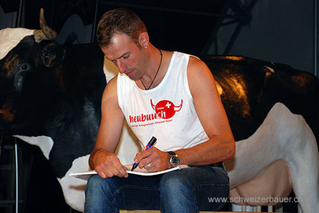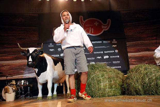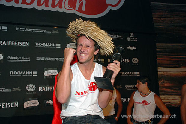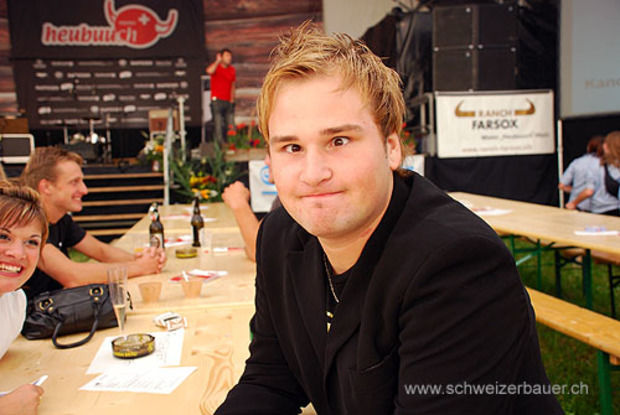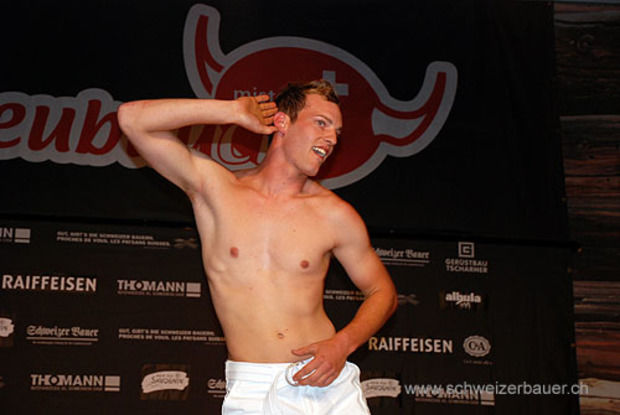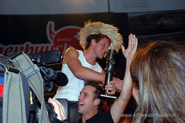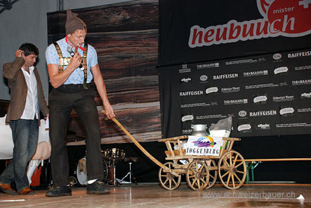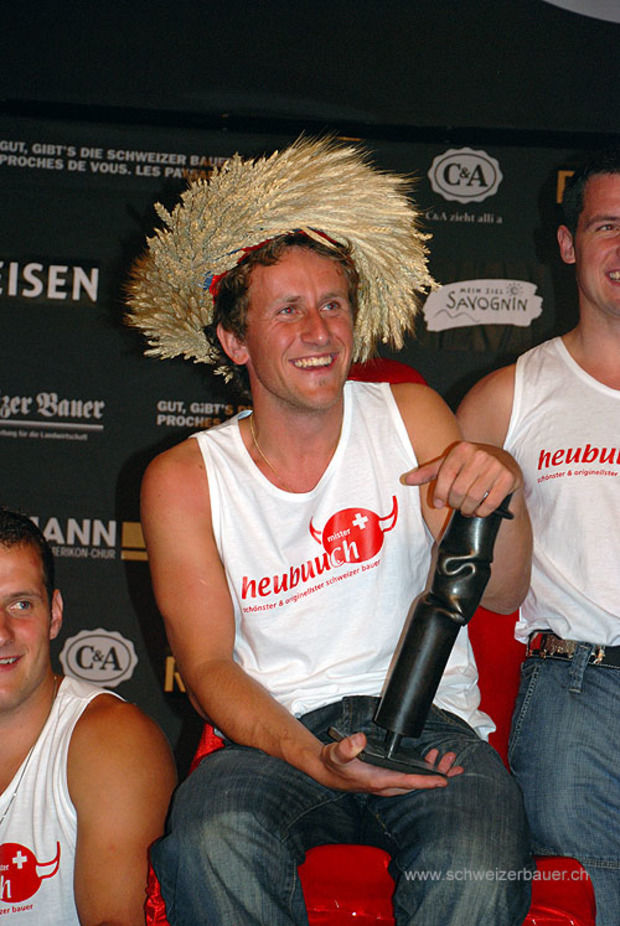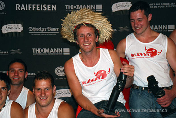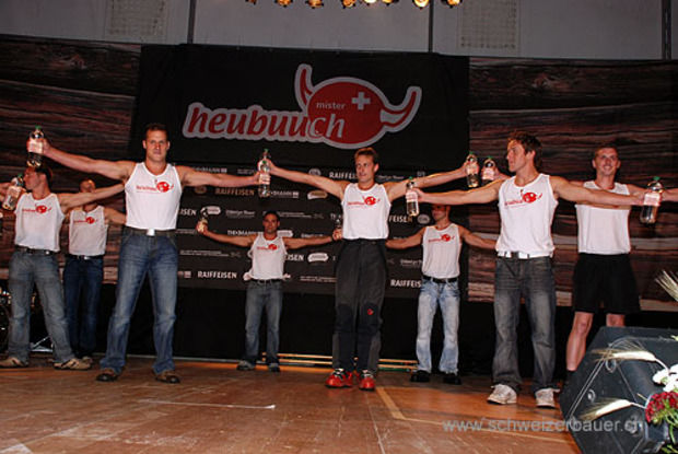 Zum sechsten Mal hiess es am Samstag, 12. Juli 2008 auf der Ranch Farsox (Graubünden): Vorhang auf für die zehn Finalisten der Wahl zum schönsten und originellsten Schweizer Bauern. Die Kandidaten lieferten sich vor erneut vollem Haus einen etwas anderen Wettkampf um die beliebte Heu-Krone des „Mister Heubuuch 2008“. Der neue schönste Schweizer Bauer heisst Raphael Bühlmann und stammt aus Emmenbrücke (LU). Bilder: Pamela Fehrenbach