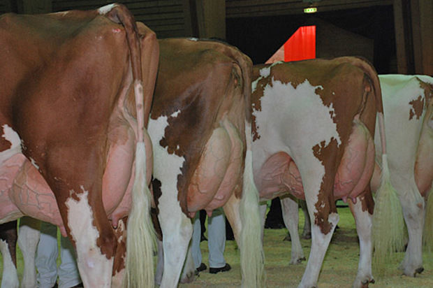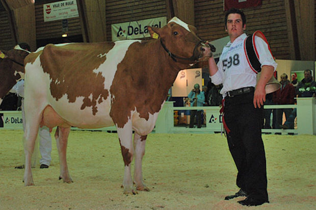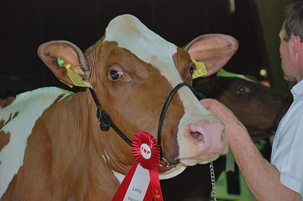 Andreas Aebi, Präsident des Schweizerischen Fleckviehzuchtverbandes, zusammen mit Erhard Junker, Red-Holsteinzüchter und Viehhändler. -