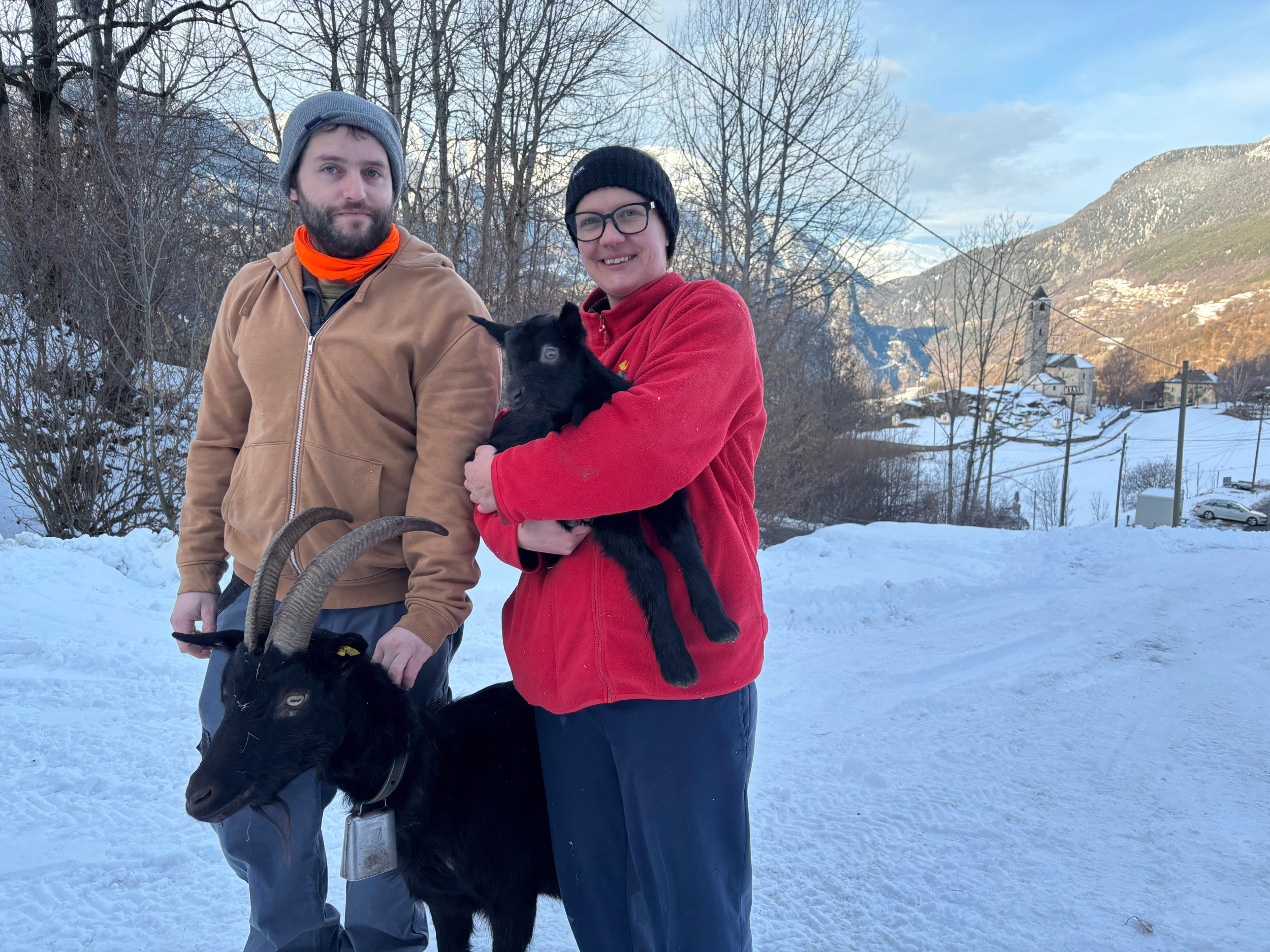 Ein sonniger Wintertag in Rossura im oberen Leventinatal, hoch oben in den Bergen des Kantons Tessin. Hier leben Danilo Falconi und Sabrina Genini mit ihrer vierjährigen Tochter, die in Faido den Kindergarten besucht. Gemeinsam bewirtschaften sie den Landwirtschaftsbetrieb «Azienda agricola Falconi Danilo e Genini Sabrina». Die Menschen, die im Winter im Dorf Rossura leben, sind an vier Händen abzuzählen.