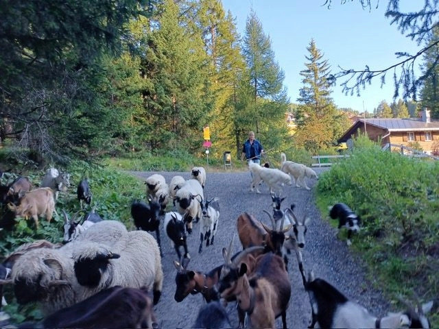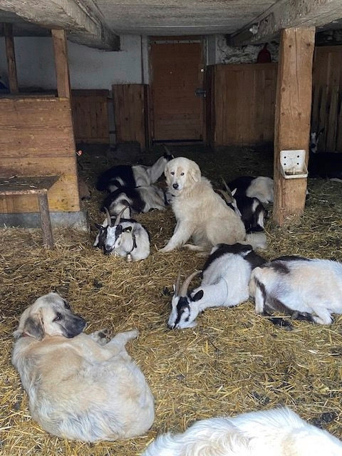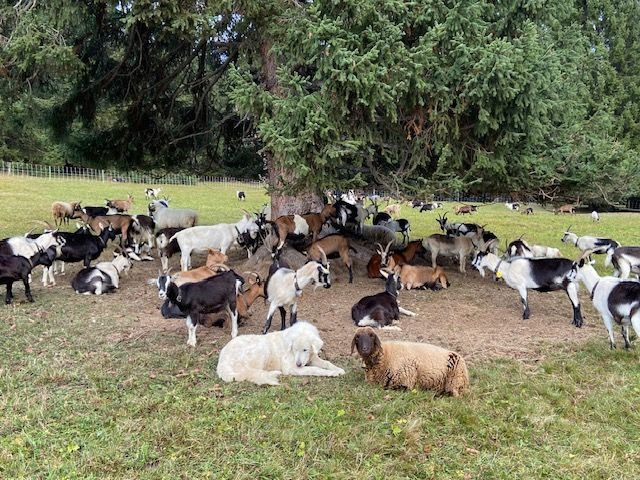 Tiere: 80 Ziegen, 20 Schafe, 4 Norikerpferde, 5 Herdenschutzhunde, 2 Border Collies