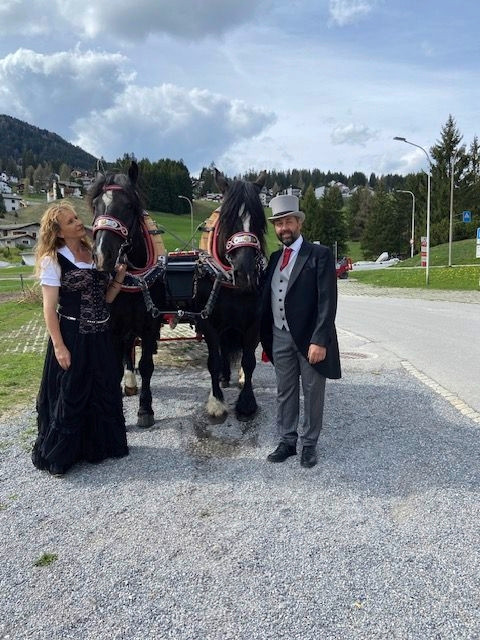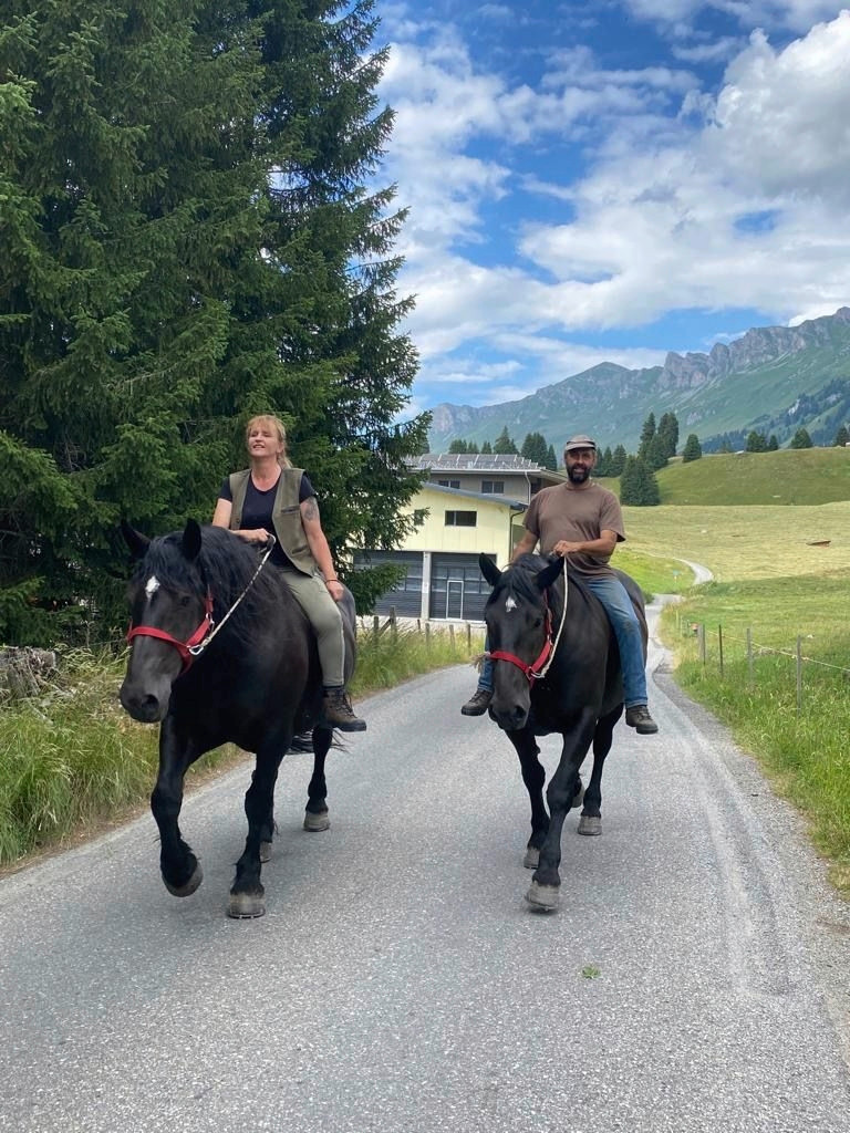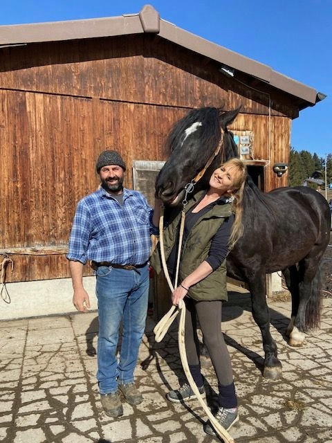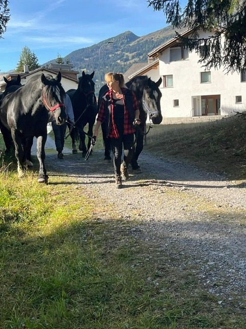 Mein Stärken liegen im Management: Ich erledige die gesamte Büroarbeit und die Geschäftsabwicklungen. In der praktischen Arbeit auf dem Hof bin ich mittlerweile auch sehr selbständig, aber der Chef im Stall ist und bleibt Bruno. In unserer Kutscherei ist Bruno der leidenschaftliche Kutscher, während ich die Reiterin bin und mich um alles rund um unsere Noriker kümmere.