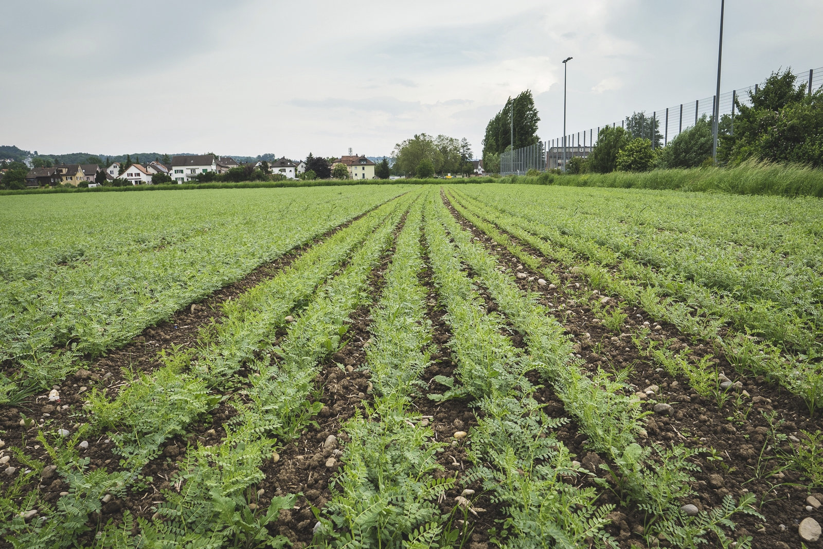 Frühling 2021. Es sieht vielversprechend aus. Lukas Weidmann schlendert bei Sonnenschein seinem Feld entlang und erfreut sich an den Stängeln, die mit ihren zarten Blättern langsam in die Höhe wachsen. Er ist zuversichtlich, dass er von ihnen im Sommer Kichererbsen ernten wird. Zwei bis drei Tonnen sollen die 2,6 Hektaren abwerfen.