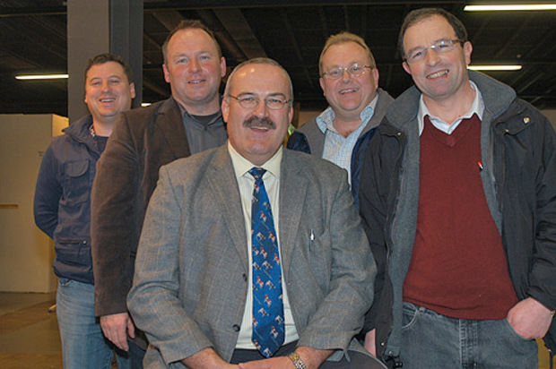 Fünf bärenstarke Männer: Marcel Wipfli, Redaktor beim Schweizer Bauer; Andreas Aebi, Präsident des Schweizerischen Fleckviehzuchtverbandes; Daniel Sempach, Inserateverkäufer beim Schweizer Bauer; Schweizer Bauer Chefredaktor Ruedi Haudenschild und Albert Bachmann, Vizepräsident des Fleckviehzuchtverbandes. -