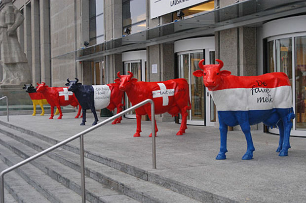 Faironika werben am Haupteingang der Swiss Expo für einen besseren Milchpreis. -