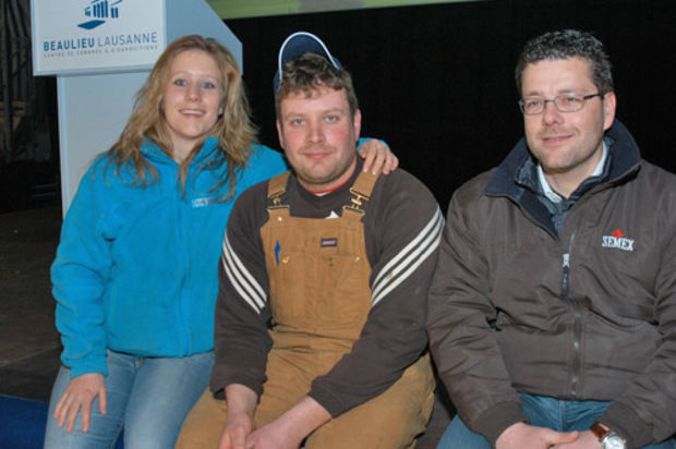 Die glücklichen Sieger der BS-Ausstellung: Ezio (links) und Nicola Pedrini freuen sich mit Organisator Jacques Rey über den Sieg von Acqua-ET. -