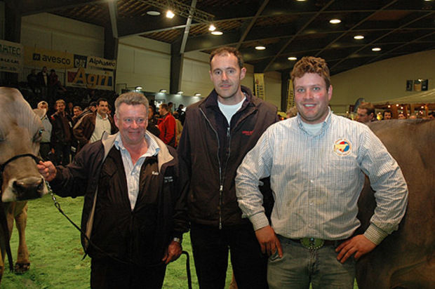 Die Gebrüder Tino und Valo Gisler mit Edwin Steiner von GS Alliance - Home of Swiss Elite Cows. -