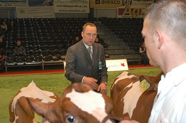 Richter Markus Gerber begründet seine Entscheide den Züchtern. -