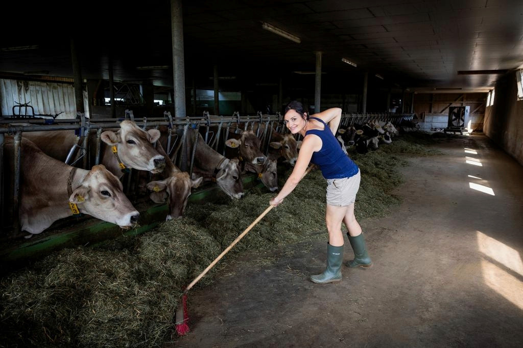 Irène Meier (43) führt gemeinsam mit ihrem Mann einen Milchwirtschaftsbetrieb mit 55 Milchkühen.