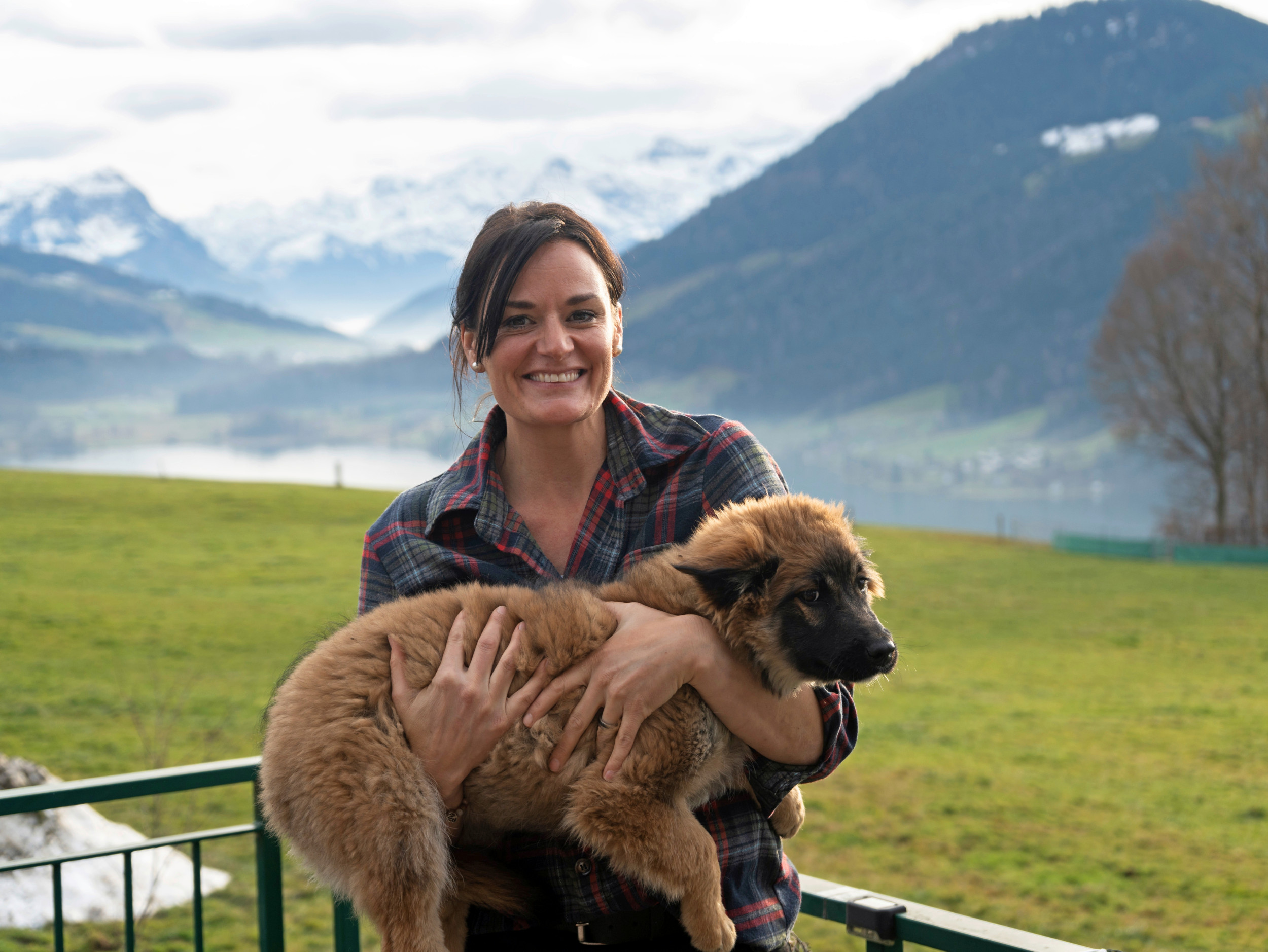 Irène Meier, Gewinnerin Landfrauenküche 2025, mit ihrer neuen Herausforderung Hündin Nala.