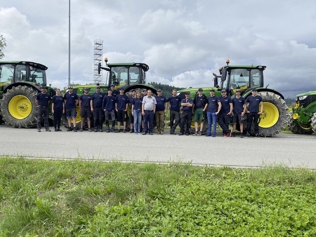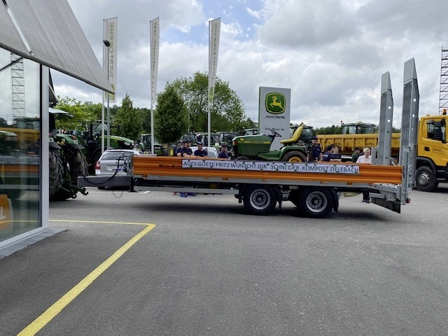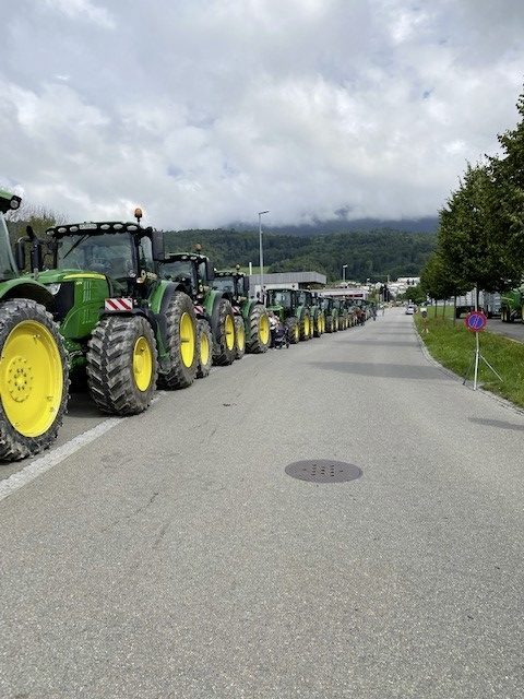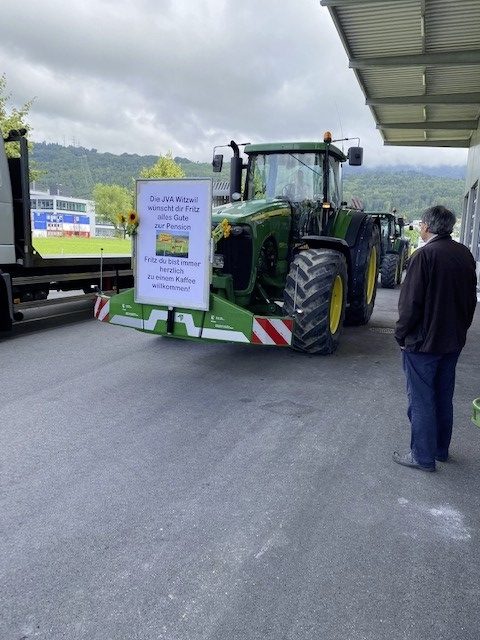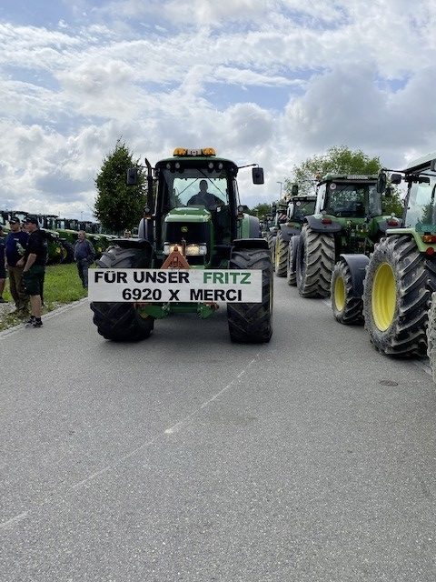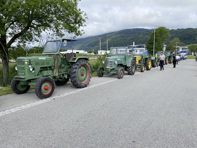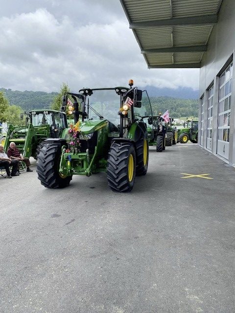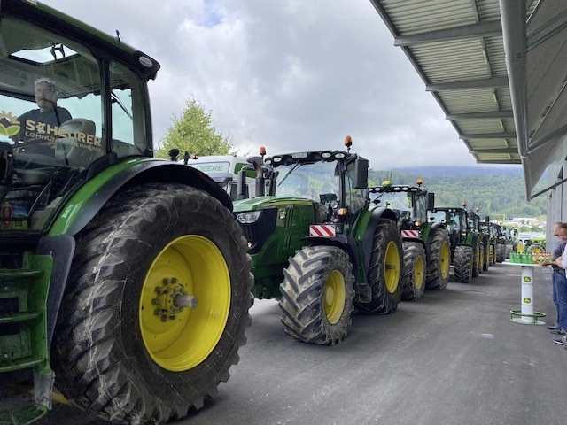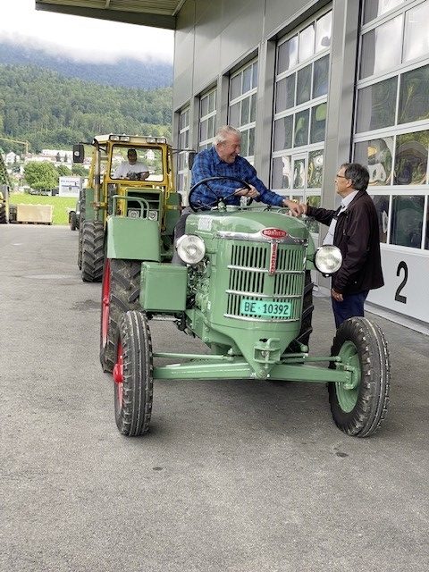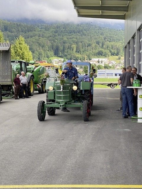 Rund 120 Kundinnen und Kunden fuhren auf ihren Bührer- und John-Deere-Traktoren nach Lengnau, um sich von Fritz Spahr zu verabschieden und ihm alles Gute zu wünschen. Die Geschäftsführung hat der bisherige Werkstattchef Dominique Boillat übernommen.