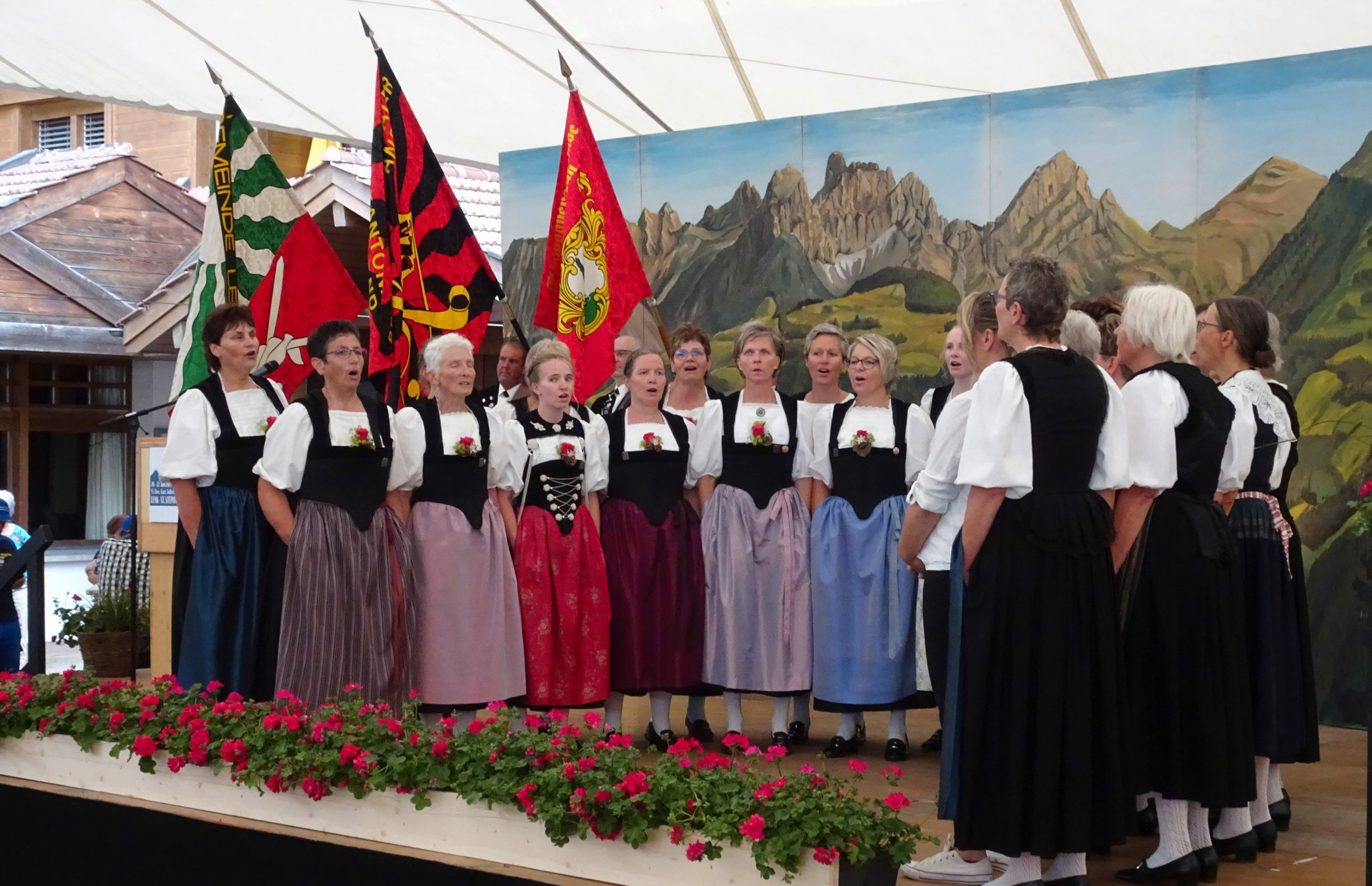 Zuschauende . Jodelchöre treten an zahlreichen Festen auf und stossen auf grosses Interesse. Regelrechte Publikumsmagnete sind die Eidgenössischen Jodlerfeste mit den drei Sparten Jodeln, Alphorn- und Büchelblasen sowie Fahnenschwingen. Sie finden in einem dreijährigen Turnus statt. Ein Jodlerfest bedeutet drei Tage Gemütlichkeit, Pflege der Kameradschaft und des lebendigen Brauchtums. Das nächste Eidgenössische Jodlerfest findet vom 26. bis 28. Juni 2026 in Basel statt. Es ist nach der ersten Ausgabe, die 1924 ebenfalls in Basel stattfand, das 32. seiner Art.