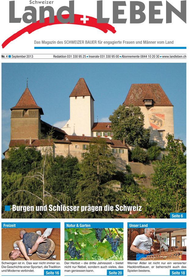 In der September-Ausgabe 2013 des Schweizer Land und Leben lesen Sie über Burgen und Schlösser, welche die Schweiz prägen, über den Volksport Schwingen, über den schon bald kommenden Herbst und viele weitere, interessante Themen.