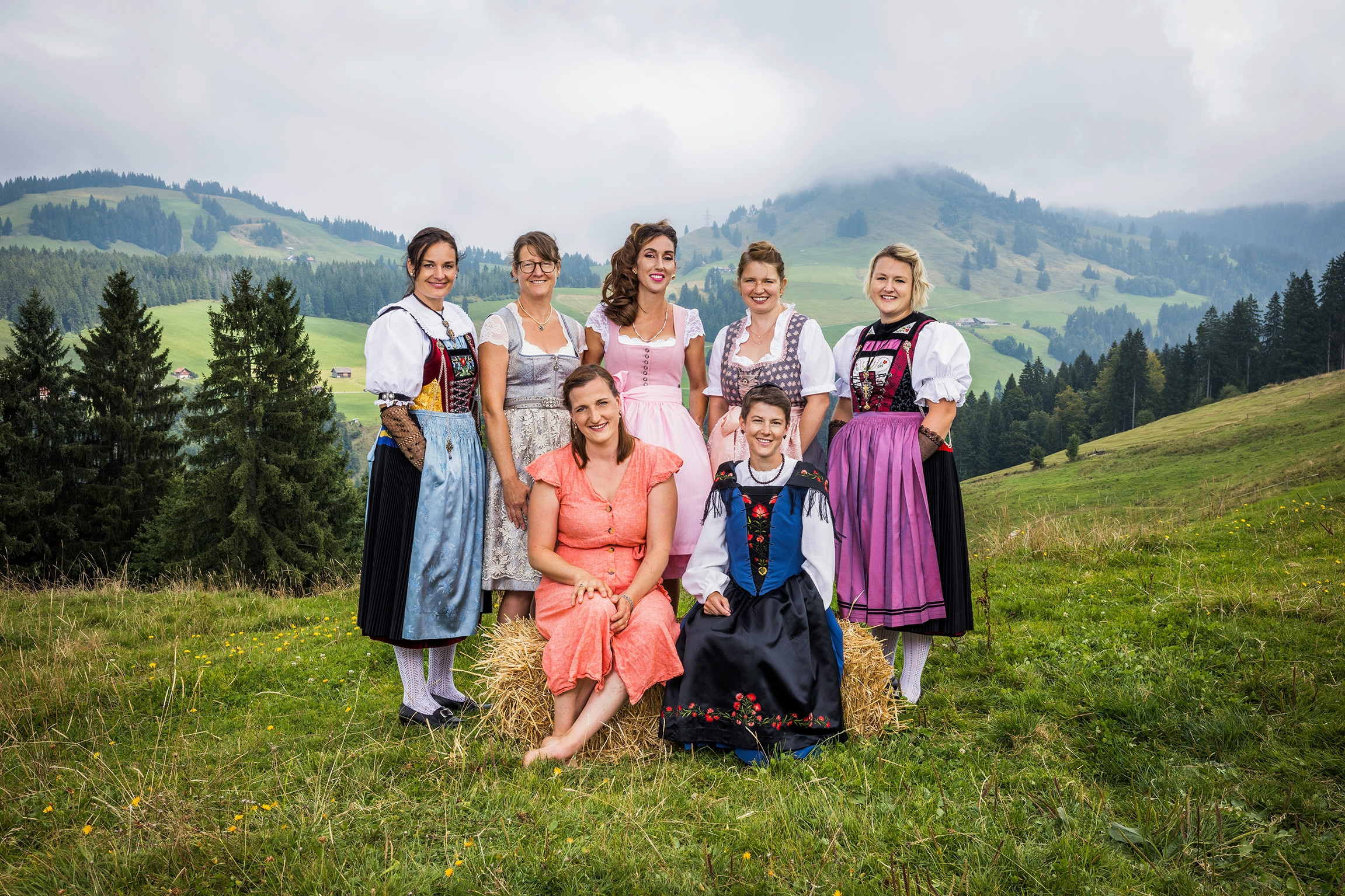 Kandidatinnen der 19. Staffel: Landfrauen: (hinten v.l.) Irène Meier, Karin Landolt, Corina Kohler, Milena Knutti, Lorena Röösli; (vorne v.l.) Stefanie Hitz-Leuenberger, Rahel Margreth