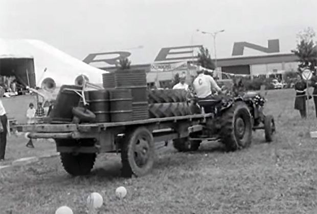 Traktorfahrer massen sich in den 1960er-Jahren beim Geschicklichkeits-Fahren untereinander. Mehr dazu seht Ihr im SRF-Beitrag aus dem Jahr 1964