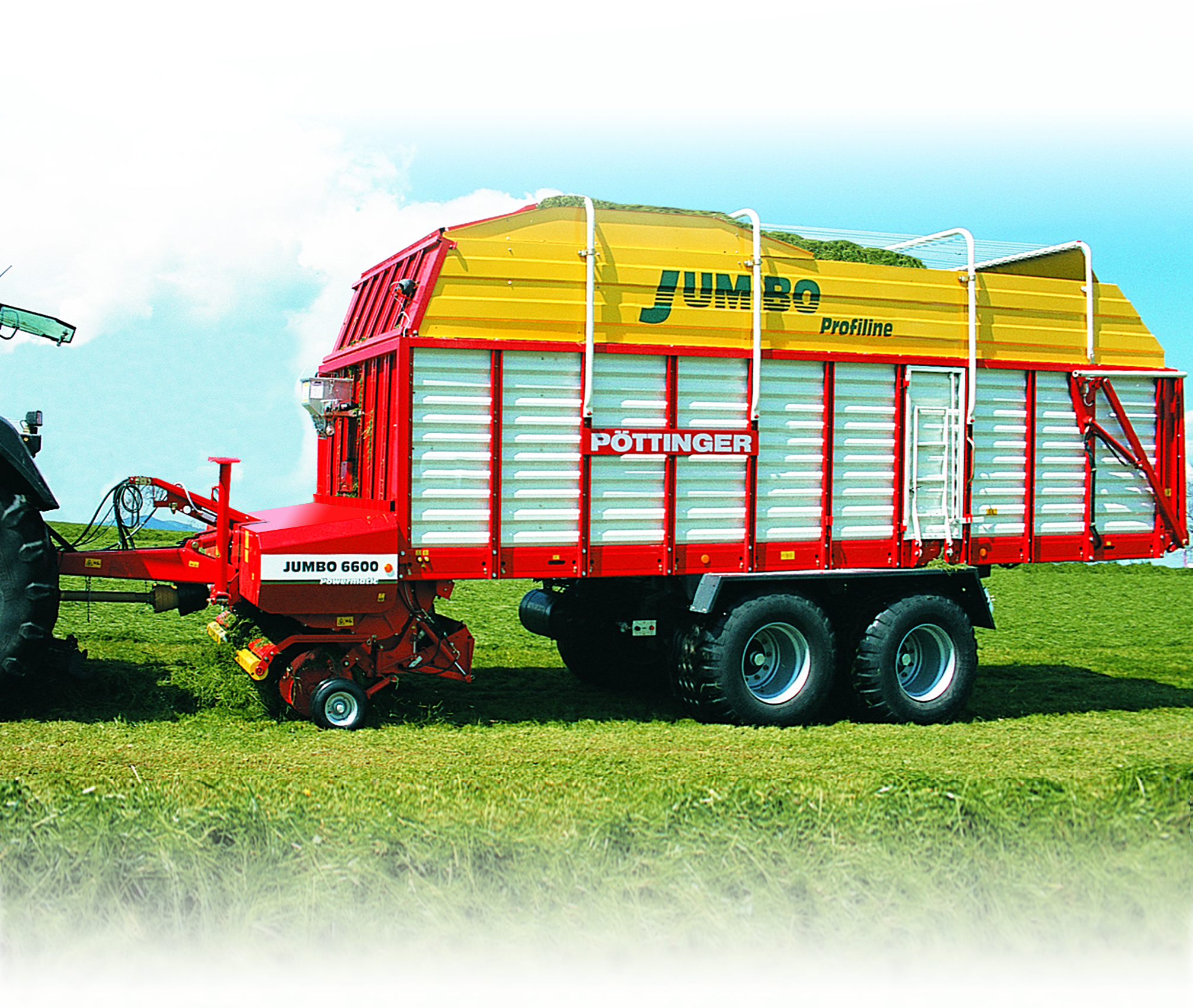 Es war eine Neuheit am Ladewagen-Markt: Die Möglichkeit des Kurzschnitts des Erntegutes direkt während des Ladevorgangs. Der Jumbo 6600 war eines der ersten Modelle und setzte den Standard für eine Reihe von Ladewagen, die speziell für den intensiven Futtereinsatz entwickelt wurden. Mit dem Modell Jumbo 8000 stellte Pöttinger – das österreichische Unternehmen hinter Jumbo – dann der weltweit erste 25-Millimeter-Schneidwerk-Ladewagen vor.