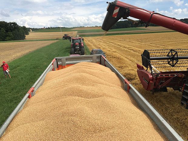 Das Case Steyr Center aus Niederweningen ZH zeigte im Juli auf seiner Demo-Tour den Case IH Axial Flow 6140 im Praxiseinsatz. Zu Gast war das Vorführteam Roger Fricker und André Laubacher vom Case Steyr Center beim Lohnunternehmen und Saatguthersteller Matzinger in Bachs ZH, bei der Landmaschinenfirma Doppler Landmaschinen, Bättwil SO, und bei der Firma Beauverd & Malherbe in Chavorney VD.