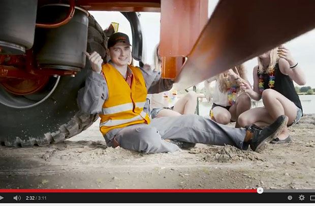 Das dies auch noch gesagt ist: Zum Einsatz im Film kommen ein Fendt 724 Vario und ein Claas 640 Arion mit je einem Tandem-Kipper von Krampe, eine etwas holprige Fahrt sowie ein paar Bier von Krombacher.