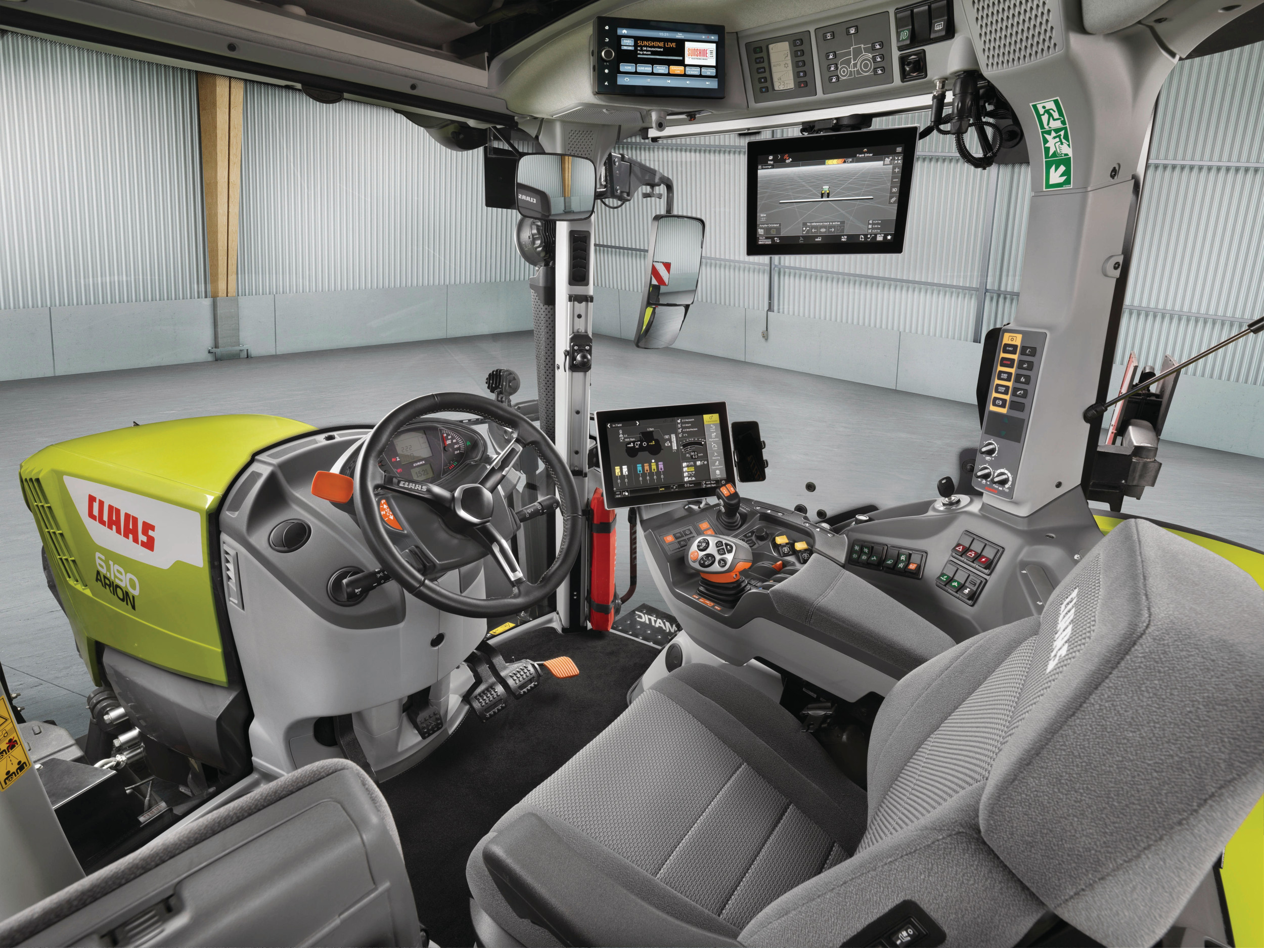 Bei der neuen Baureihe sind erstmals neue Premium-Fahrersitze mit Massagefunktion sowie einer semiaktiven Federung und Sitzklimatisierung verfügbar. «Die Massagefunktion unterstützt das Wohlbefinden und damit die Konzentration des Fahrers, reduziert Körperverspannungen und fördert damit die Gesundheit», schreibt Claas. Darüber hinaus ist für den Arion 6.190 Cmatic ein neues Multimediasystem mit Apple CarPlay, Android Auto und DAB+ verfügbar. Die Einstellung und Überwachung von Parametern in Bereichen wie Hydraulik, Kraftheber, Isobus-UT oder auch Cemos erfolgt gemäss Hersteller intuitiv im integrierten Cebis-Terminal in der rechten Armlehne. Zugriff und Eingabe erfolgen entweder über das Touchdisplay oder per Drehtaster.