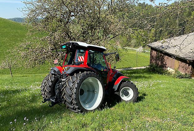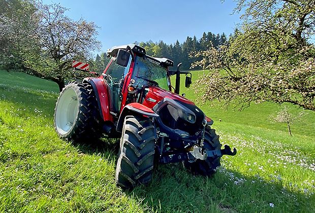 Der rund 100 PS starke Traktor ist stufenlos unterwegs und ist mit allen Finessen der Hydraulik ausgestattet. Die optional verfügbare gelenkte Hinterachse, die bis zu 20 Grad mitlenkt, macht den Traktor extrem wendig, was alle Testfahrer beindruckte. Und nicht zuletzt sticht der «Bergsteiger» aus Österreich durch sein Design hervor.