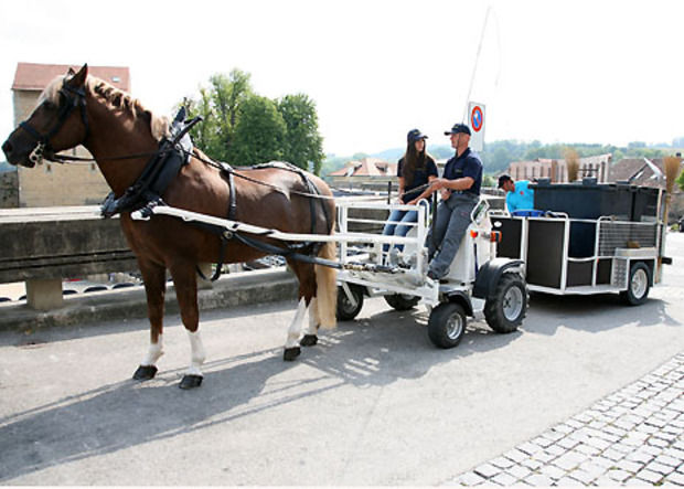In Avenches wird seit Anfang August die E-Kutsche bereits eingesetzt: Laut Meterus werden drei Mal wöchentlich die öffentlichen Abfallkübel geleert. Ausserdem findet an jedem ungeraden Montag im Monat die Altpapiersammlung neu nun per Pferd und E-Kutsche statt.