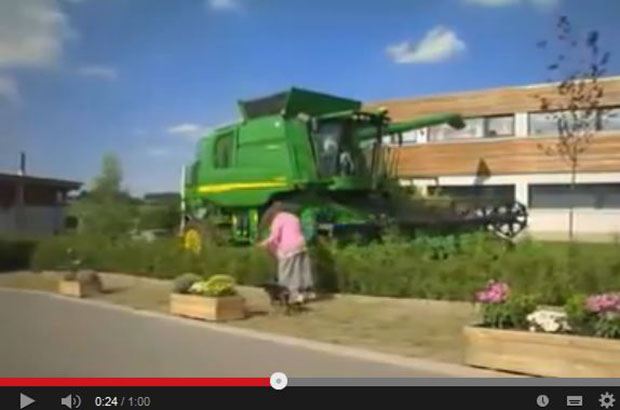 Da staunt die Ehefrau nicht schlecht: beim Blumengiessen in der Wohnung sieht sie, wie ihr Ehemann draussen den Garten mit einem 9-Scharpflug und einem 537 PS starken John Deere 9630 pflügt.