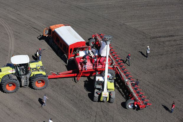 Zwei Sämaschinen-Hersteller buhlen um den Weltrekord im 24-h-Maissäen.