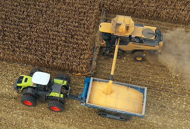 Wie der deutsche Landtechnikhersteller am vergangenen Mittwoch mitteilte, gelang es Rob Stewart am 26. September mit einem 16-reihigen Vorsatz für den Mähdrescher, die Spitzenmengen von 1'111 t Körnermais in acht Stunden und 1'620 t in zwölf Stunden zu ernten. Die Maschine habe damit einen durchschnittlichen Stundendurchsatz von rund 135 t Körnermais erreicht.