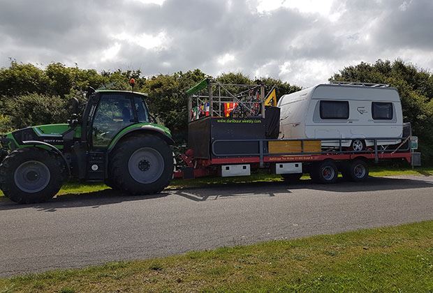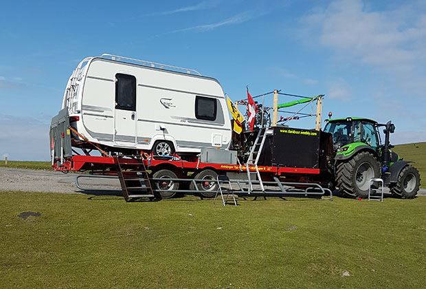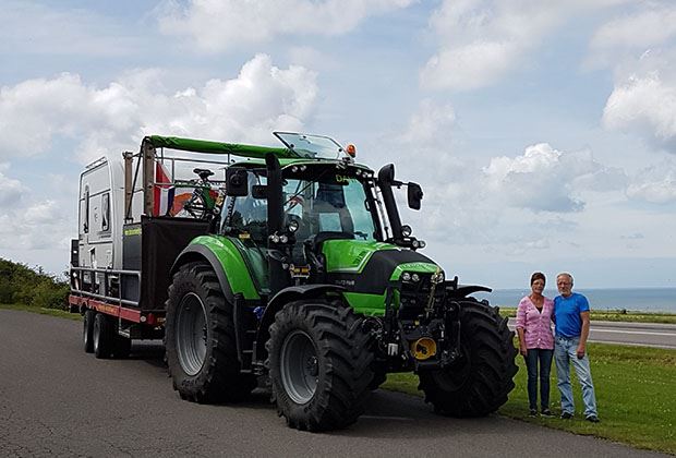 Silvia habe er schnell überzeugen können. «Für mich war von Anfang an klar, dass ich mitgehe», sagt diese. Für die Fahrt hat Daniel extra einen Deutz-Fahr Agrotron 6180 TTV mit 180 PS und Stufenlosgetriebe sowie einen Tieflader und einen Wohnwagen angeschafft. Den Wohnwagen hat er auf dem Tieflader festgeschraubt. Hinzu kamen ein Frischwasser- und ein Abwassertank sowie ein Stromgenerator und zwei Fahrräder.